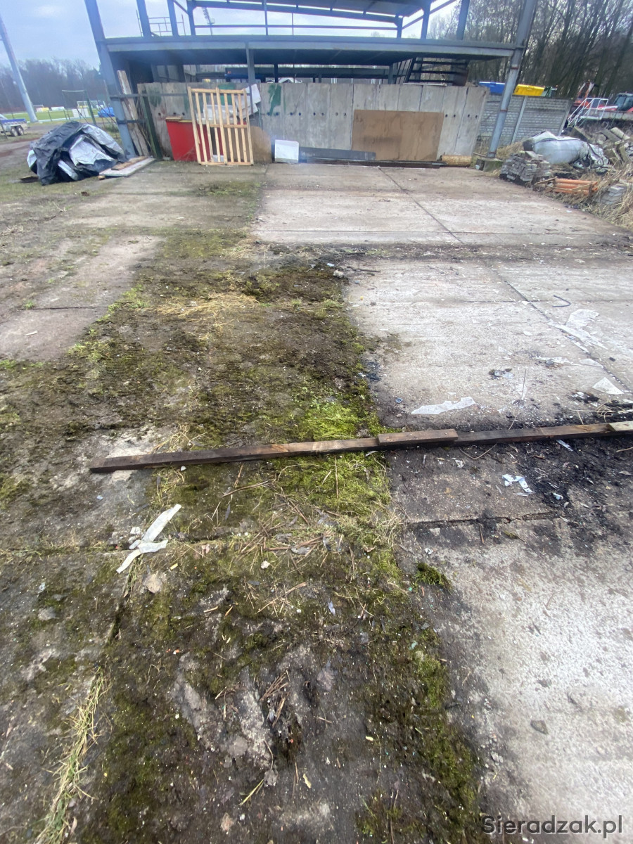 Do rozbiórki utwardzenia pozostałe po zabudowaniach gospodarczych – wylewka betonowa o powierzchni ok 9x28m oraz 6x6m (łącznie ok 288 m2)