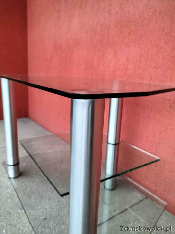 Sprzedam szklany stolik RTV, wysokość 53 cm, długość 76,6, szerokość 46,5, stan bdb