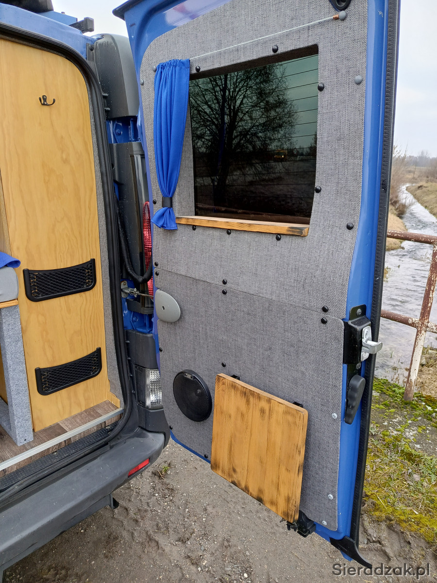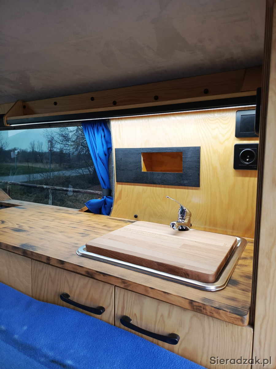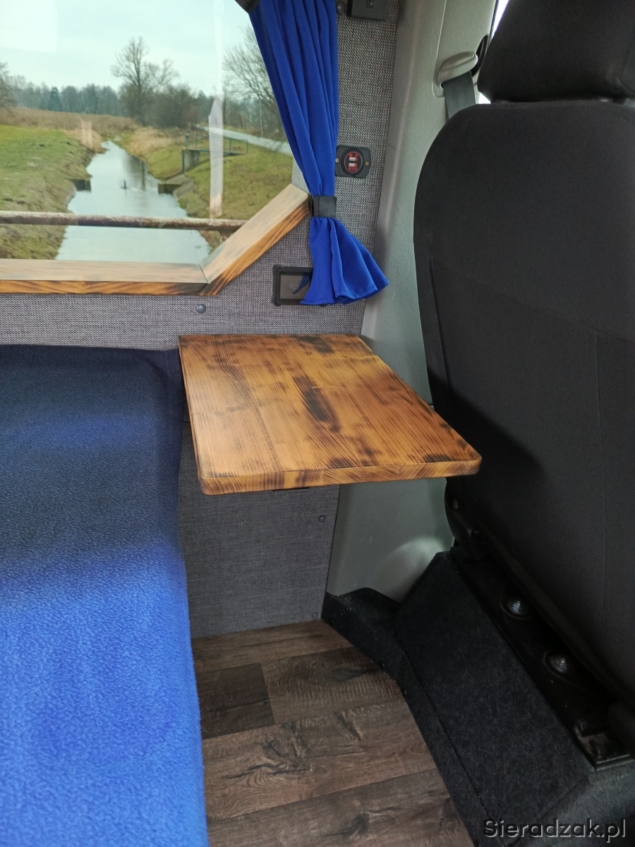Samochód został wyposażony w ogrzewanie postojowe, dodatkowe ładowarki, lodówka ,wc,zlew z kranem ,łóżko ,obrotnice przednich foteli, zbiornik na czystą wode ,wlew jest zamontowany na ścianie zewnętrznej zamykany na kluczyk. Jest także zamontowany zbiornik na brudną wodę pod samochodem. Meble wykonane z sklejki wodoodpornej polakierowane lakierobejcą .Na dachu znajduje się okno dachowe o wymiarach 40x40 uchylne z roletą i moskitierą , panel fotowoltaiczny o mocy 170W. Jest także zamontowany dodatkowy akumulator ,regulator ładowania MPPT ,przetwornica ,skrzynka bezpieczników ,gniazda 230v, hebel wyłącznik zasilana ,oświetlenie led,pompa wody. Wszystko nowe i nieużywane. Wszystkie podzespoły elektryczne na gwarancji . Więcej informacji i zdjęć mogę wysłać zainteresowanej osobie. Polecam .Cena do negocjacji .