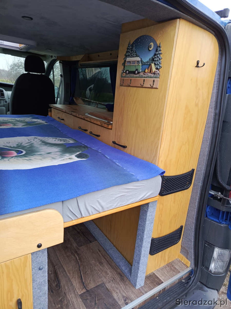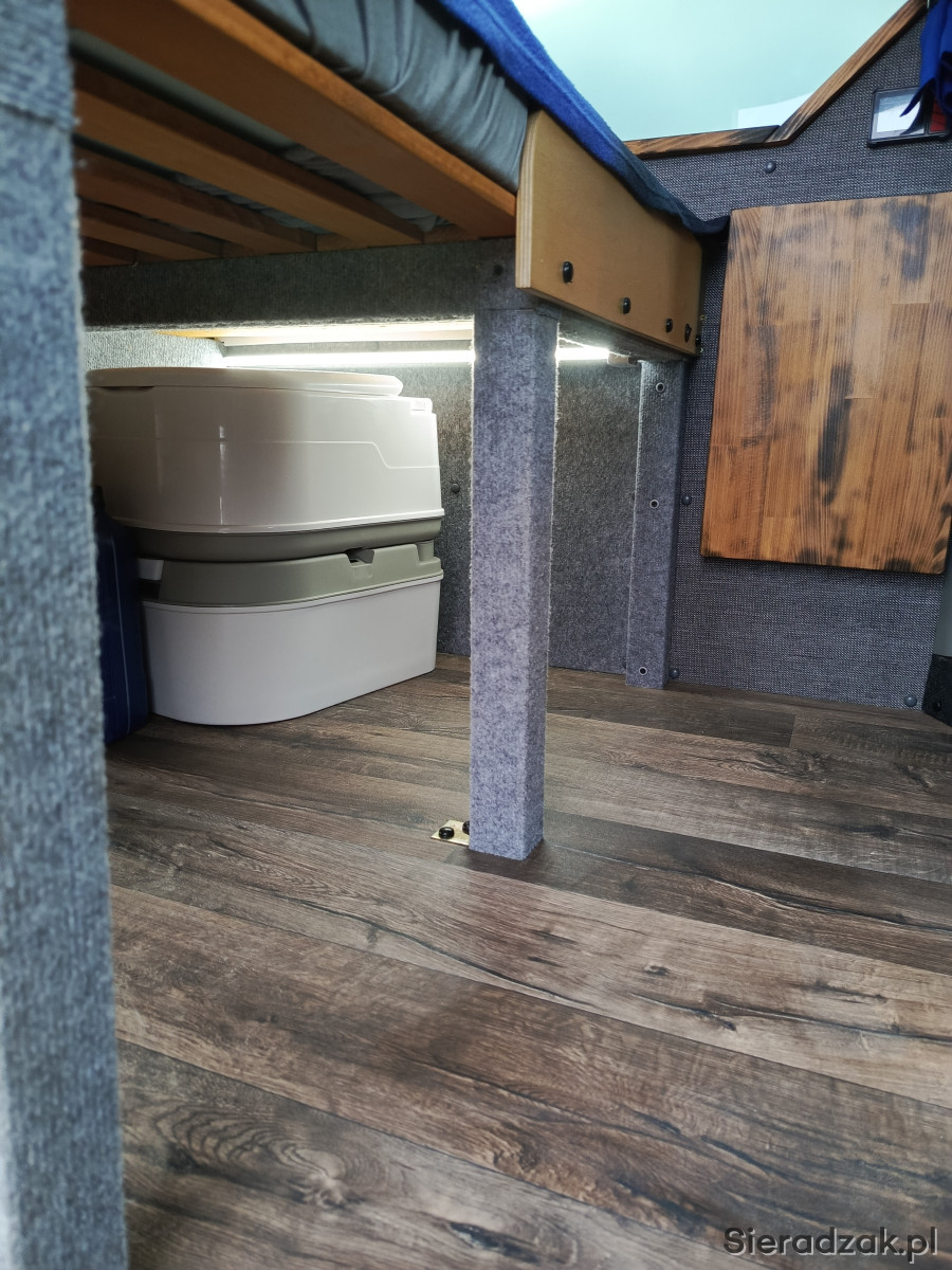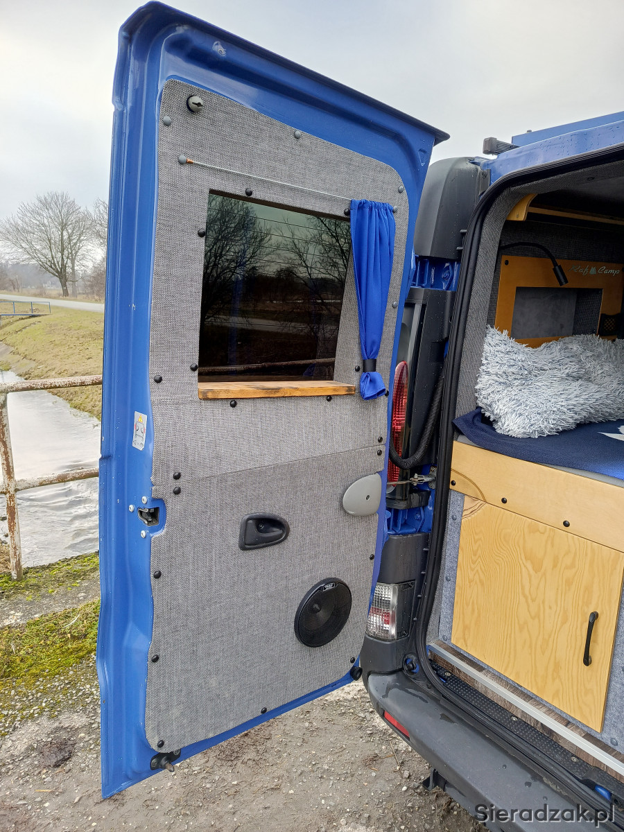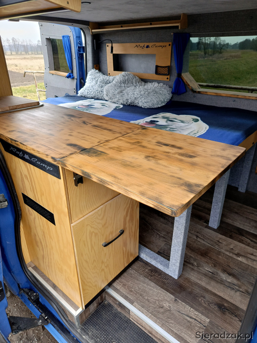 Samochód został wyposażony w ogrzewanie postojowe, dodatkowe ładowarki, lodówka ,wc,zlew z kranem ,łóżko ,obrotnice przednich foteli, zbiornik na czystą wode ,wlew jest zamontowany na ścianie zewnętrznej zamykany na kluczyk. Jest także zamontowany zbiornik na brudną wodę pod samochodem. Meble wykonane z sklejki wodoodpornej polakierowane lakierobejcą .Na dachu znajduje się okno dachowe o wymiarach 40x40 uchylne z roletą i moskitierą , panel fotowoltaiczny o mocy 170W. Jest także zamontowany dodatkowy akumulator ,regulator ładowania MPPT ,przetwornica ,skrzynka bezpieczników ,gniazda 230v, hebel wyłącznik zasilana ,oświetlenie led,pompa wody. Wszystko nowe i nieużywane. Wszystkie podzespoły elektryczne na gwarancji . Więcej informacji i zdjęć mogę wysłać zainteresowanej osobie. Polecam .Cena do negocjacji .