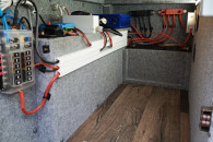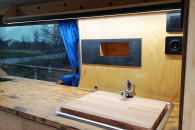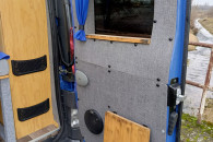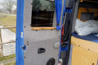 Opel został cały wygłuszony i ocieplony , ściany,dach ,wszystkie drzwi pokryte zostały sklejką wodoodporną a na to materiał tapicerski.