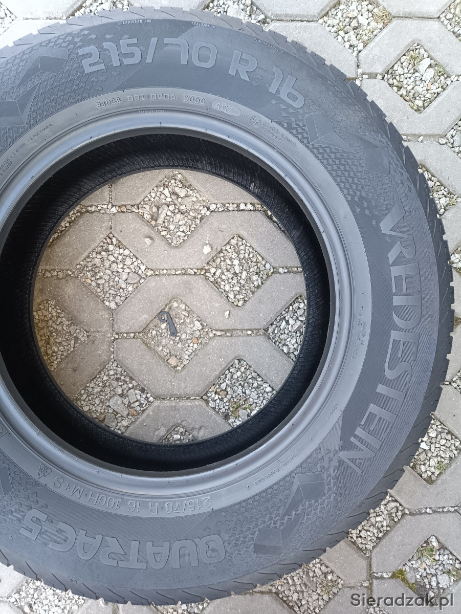 2x opony całoroczne wielosezonowe Vredestein 215/70 R16 100H, DOT 4117, bieżnik 5,3mm. Opony w dobrym stanie jak na zdjęciach, sprawdzone ciśnieniowo.