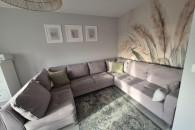 Sprzedam rogówkę w kształcie litery U z funkcją spania i pojemnikiem na pościel . Możliwość dopiecia pufy do rogówki ,wymiary 256x329x171
