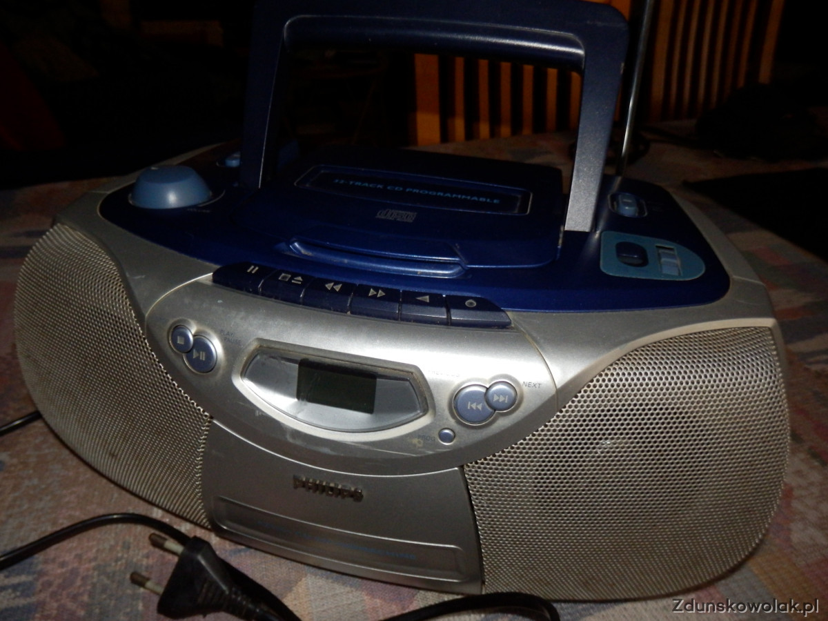 Sprzedam radioodbiornik z CD i magnetofonem kasetowym firmy Phillips. Sprzęt o dużej głośności . Radio odbiera w całeym zakresie FM. Magnetofon jest sprawny. Niestety CD nie działa /jakaś usterka do usunięcia/. Wygląd estetyczny,antena sprawna pokretła i klawisze działają. Drobne przytarcia na wyświetlaczu CD. Polecam osobom lubiacym sprzęt o dużej skali regulacji siły głosu. Zapraszam do zakupu.