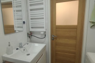 Kuchnia, łazienka i przedpokój w pełni umeblowane.