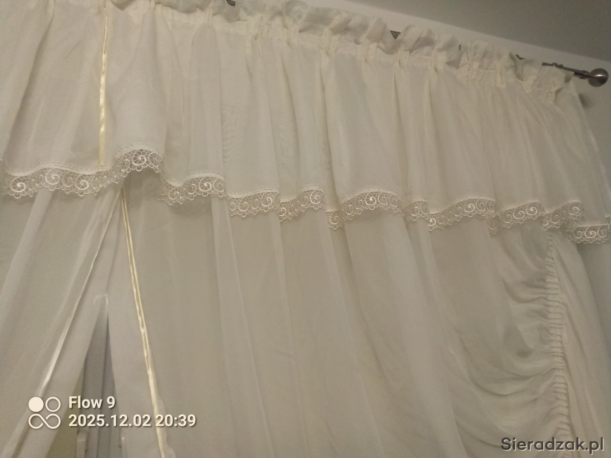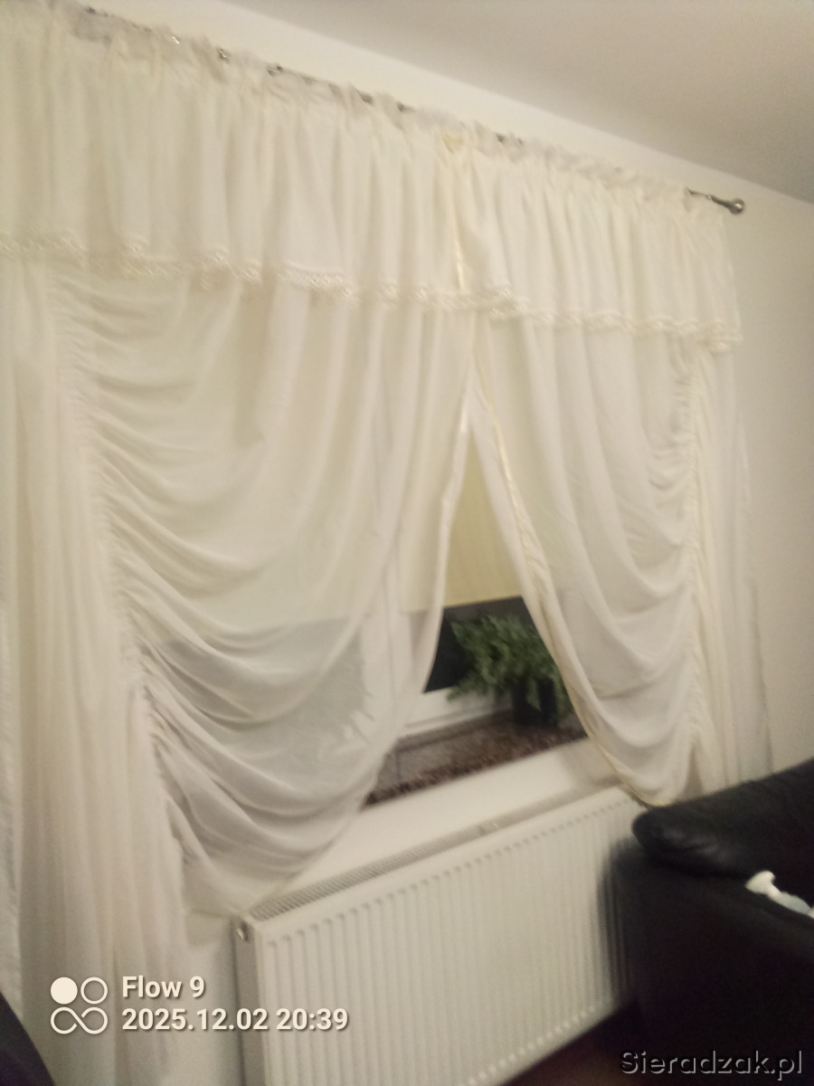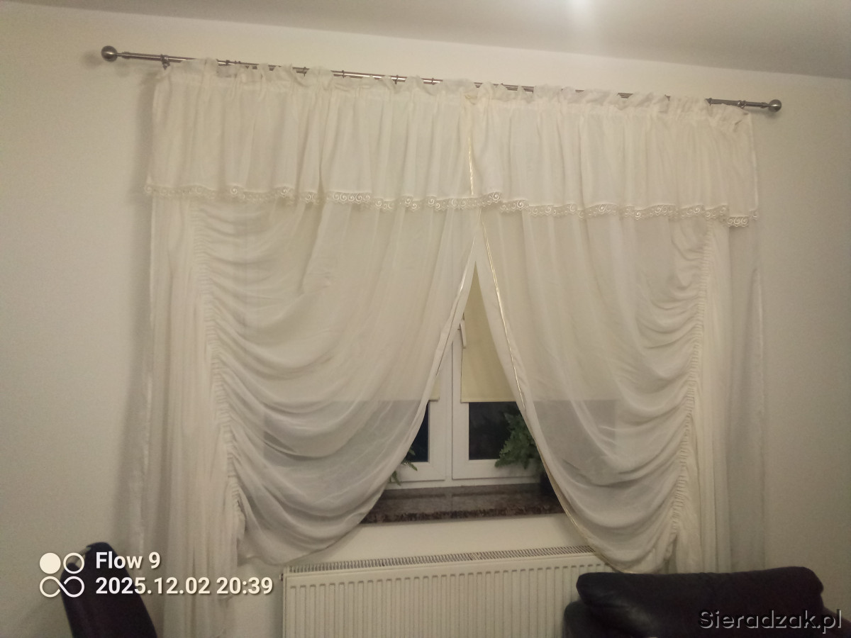 Sprzedam śliczne firany do salonu i nie tylko w kolorze śmietanki na taśmie marszczacej obszyta gipiura pasuje na karnisz 2,5 m. Firana używana zamiennie z innymi stan b.dobry. zapraszam
