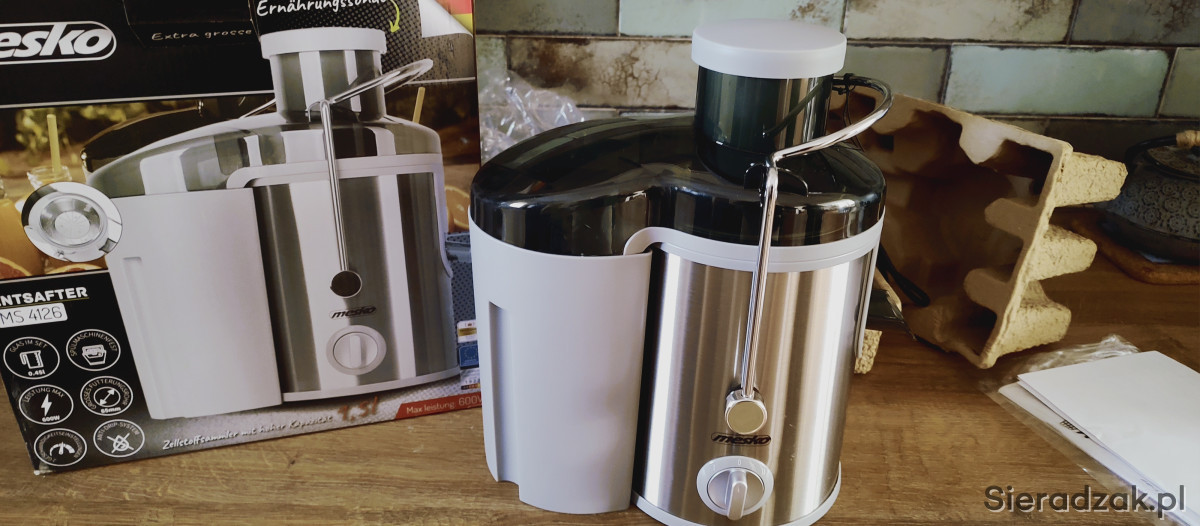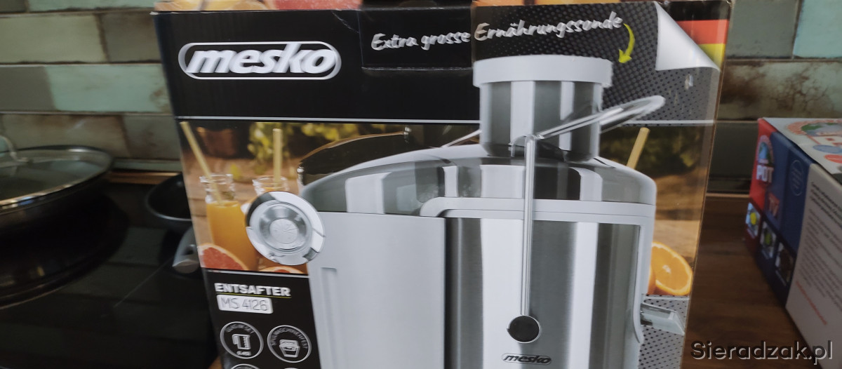 Nowa sokowirówka. Sito że stali nierdzewnej, blokada bezpieczeństwa. Pojemnik 1,5 l na miąższ. Pojemnik na sok 0,45 l.