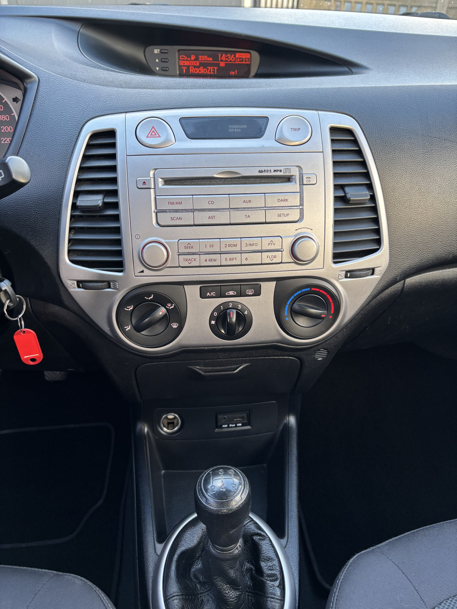 Sprzedam Hyundai i20 1 generacji z 2009 roku. Silnik benzynowy 1.2 (78 KM). 5-drzwiowy, z manualną skrzynią biegów. Dodatkowo posiada sterowanie radiem w kierownicy, klimatyzację i centralny zamek.