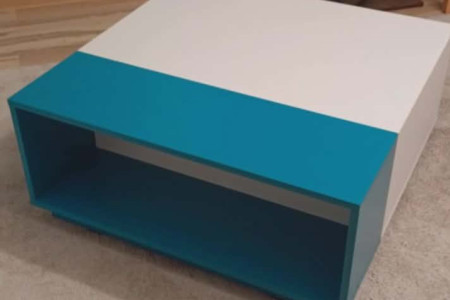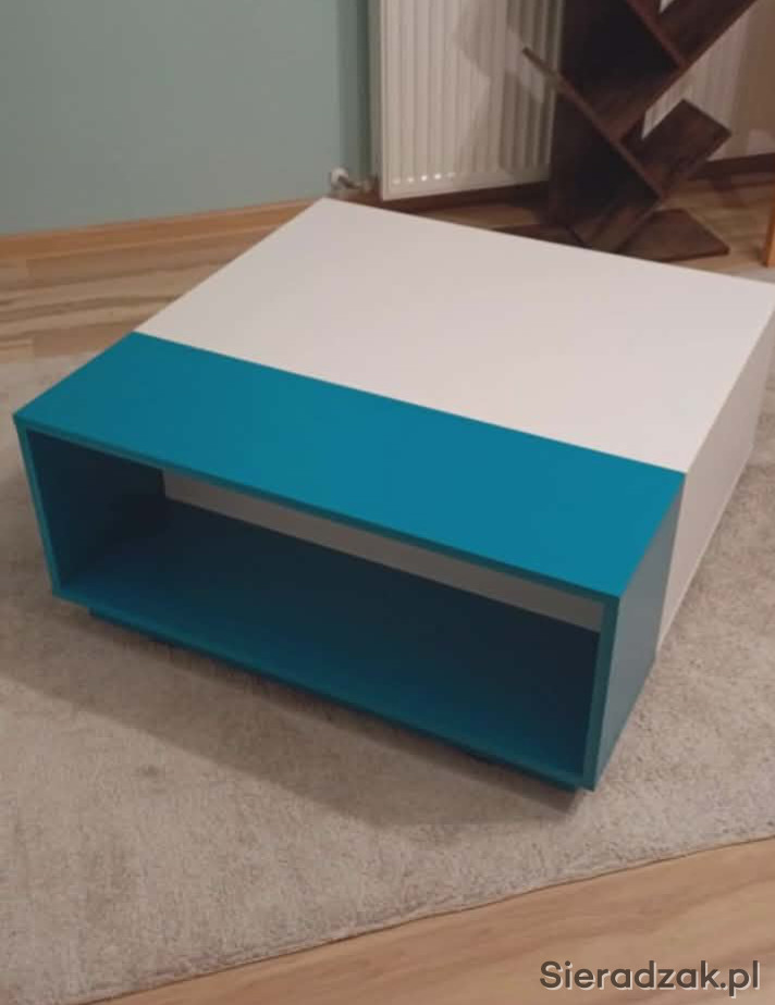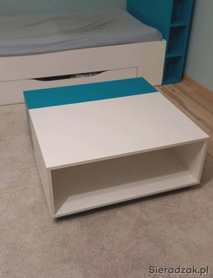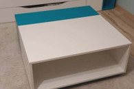 Biały stolik z turkusowym akcentem