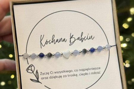 Bransoletka z kamieni naturalnych minerałów na sznurku. Zapięcie w formie makramy.