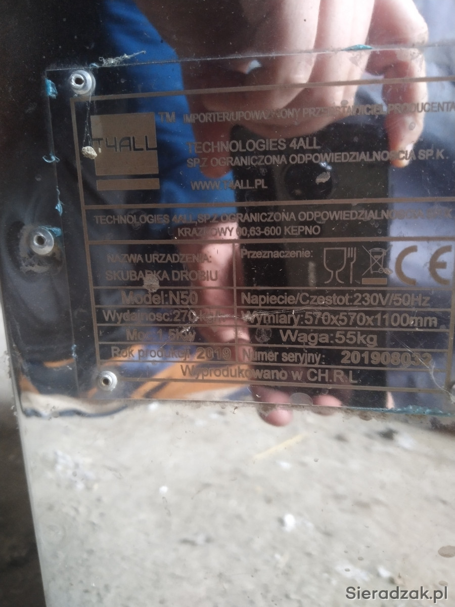 Mam do sprzedania oryginalną skubarkę do drobiu. Wyprodukowana w 2019. U mnie używana sporadycznie 2 razy do roku. W sumie może 60 szt. Kupiona w 2021 od restauratora który używał jej 3 razy bo podczas c19 padł mu biznes. Jedyne ślady użytkowania to pozostałości piór. Wciąż posiada oryginalną folię na obudowie. Posiada bezpośrednie podłączenie wody i pokrywę. Jako że skubarka jest prawie nowa cena do rozsądnej negocjacji. Odbiór osobisty lub dowóz w okolicach Złoczewa.