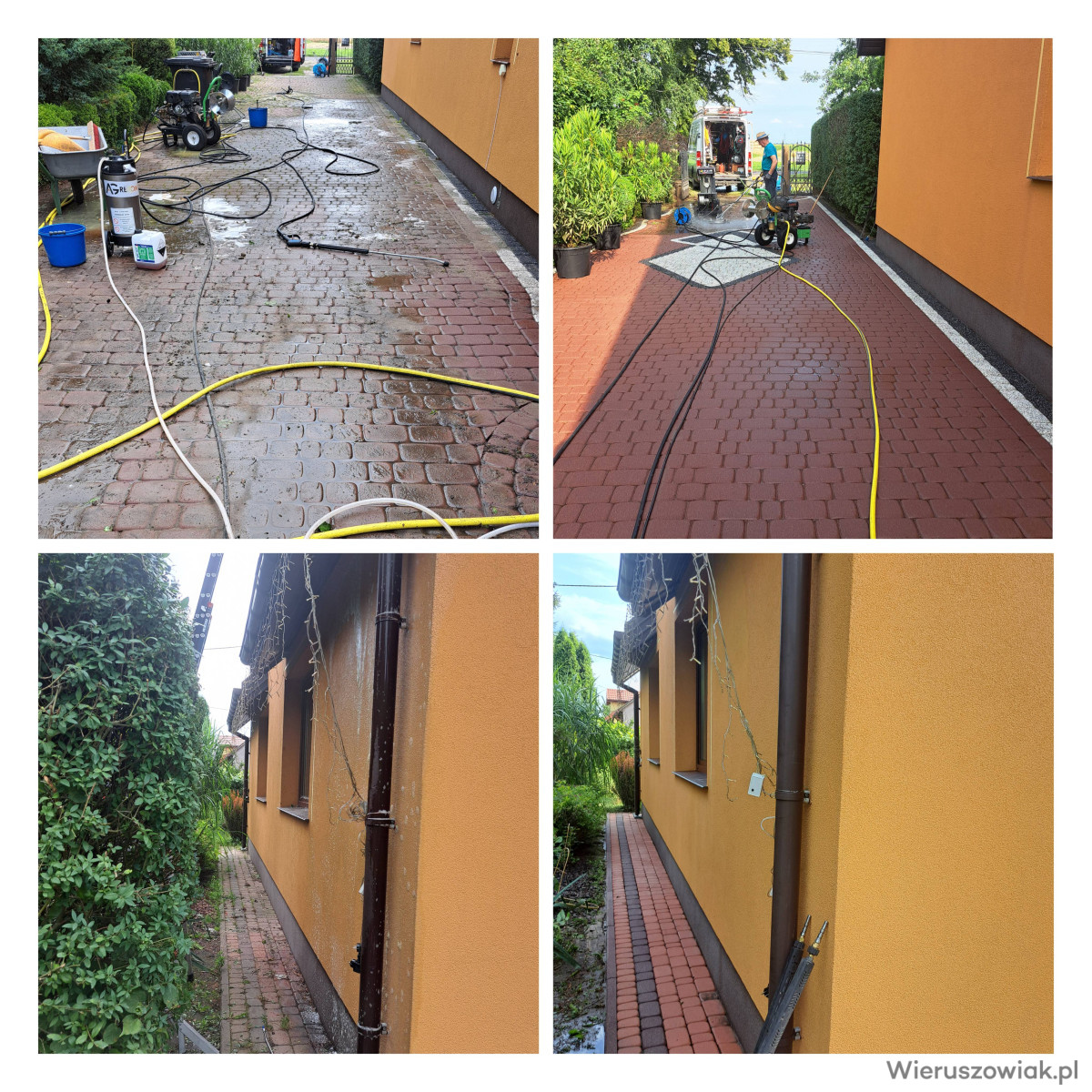 Profesjonalne mycie ciśnieniowe kostki brukowej, elewacji i dachów