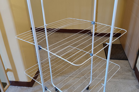 Suszarka na pranie, mało używana, od nowości już lekko wygięte pręty, co nie przeszkadza w użytkowaniu.