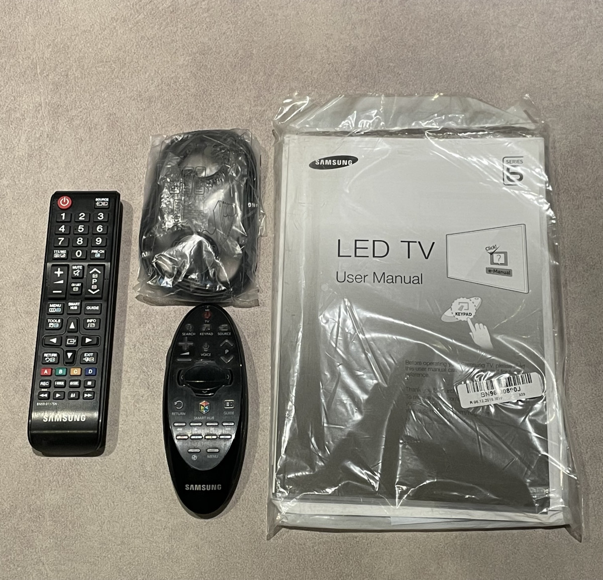 W zestawie 2 piloty (ten większy nie działa), przedłużacz podczerwieni, instrukcje oraz srebrna podstawa niewidoczna na zdjęciach.