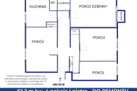 4 pokoje | 62,2 m² | I piętro | balkon | Pomorska 19 – Zduńska Wola | do generalnego remontu