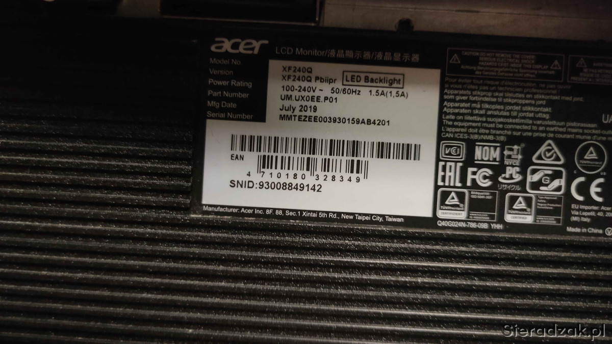 Monitor Acer XF240QPBIIPR to model z wysoką częstotliwością odświeżania 144Hz i niskim czasem reakcji. Stan bardzo dobry. Odbiór osobisty, ewentualnie mogę mogę dowieźć w promieniu 30km od SIeradza.