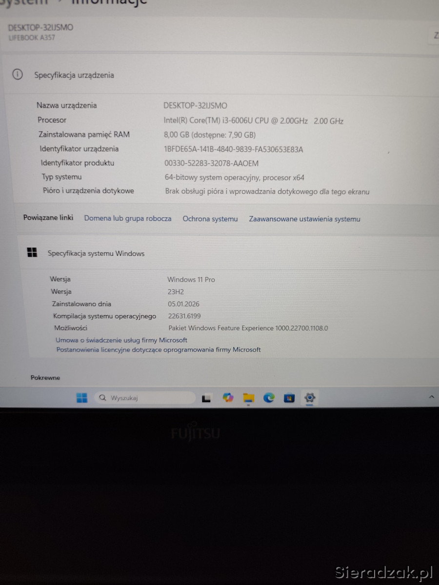 Witam sprzedam laptop Fujitsu 15.6cala procesor i3 , 8gb ram 256gb dysk SSD windows 11 , kamera, HDMI, USB VGA bateria trzyma ponad 2 godziny ładowarka w komplecie. Laptop sprawny szybki i gotowy do pracy.