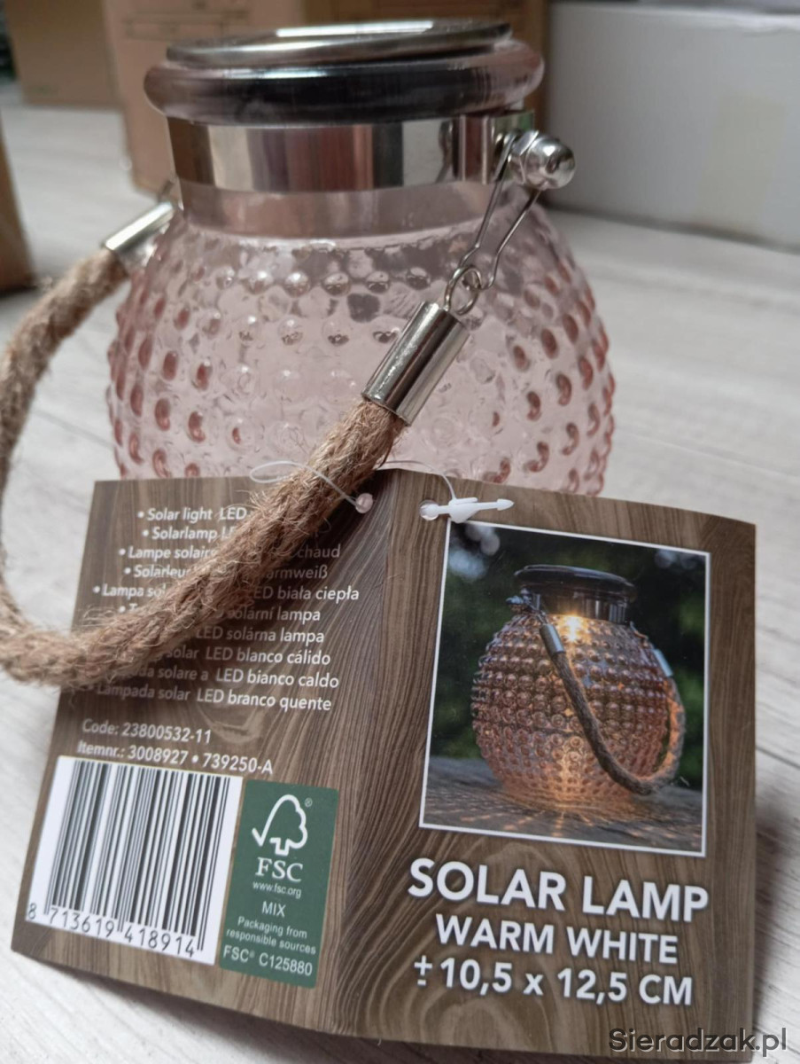 Lampa solarna z uchwytem z juty LED