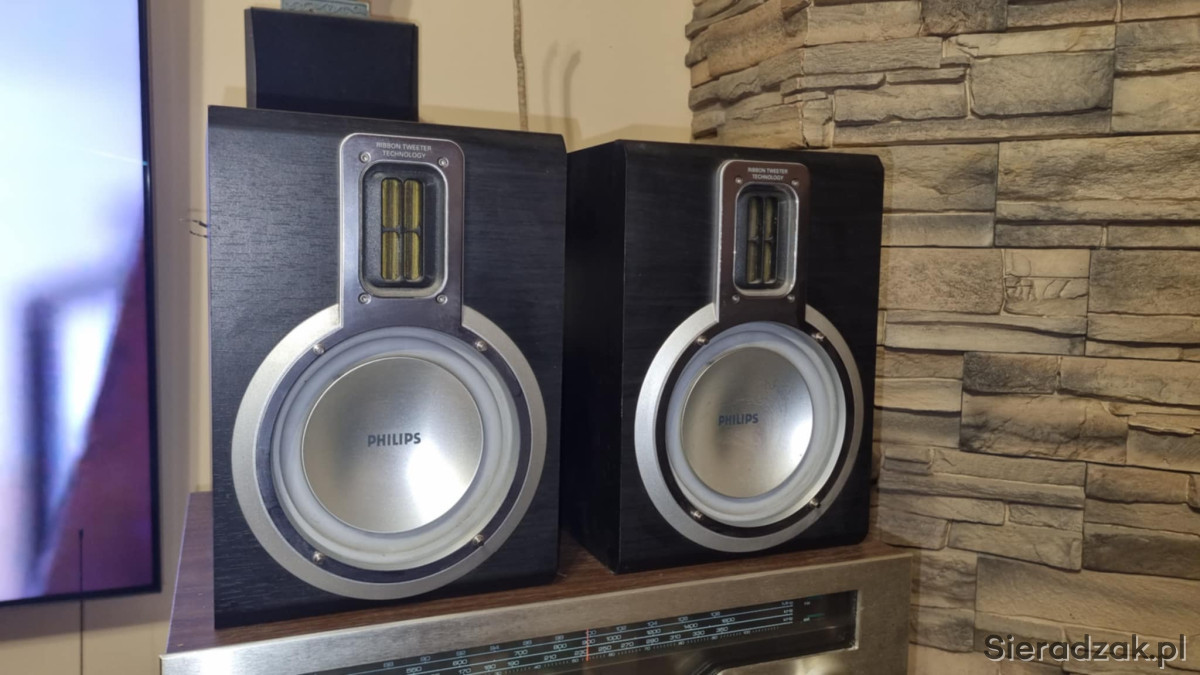 Kolumny stereo Philips MCM 761 2x75W Wstęgi Tweeter Ribbon Bass-Reflex.