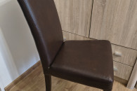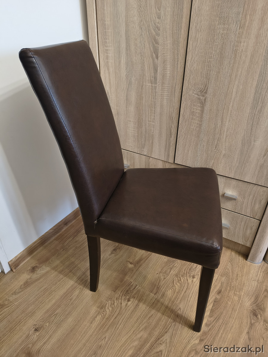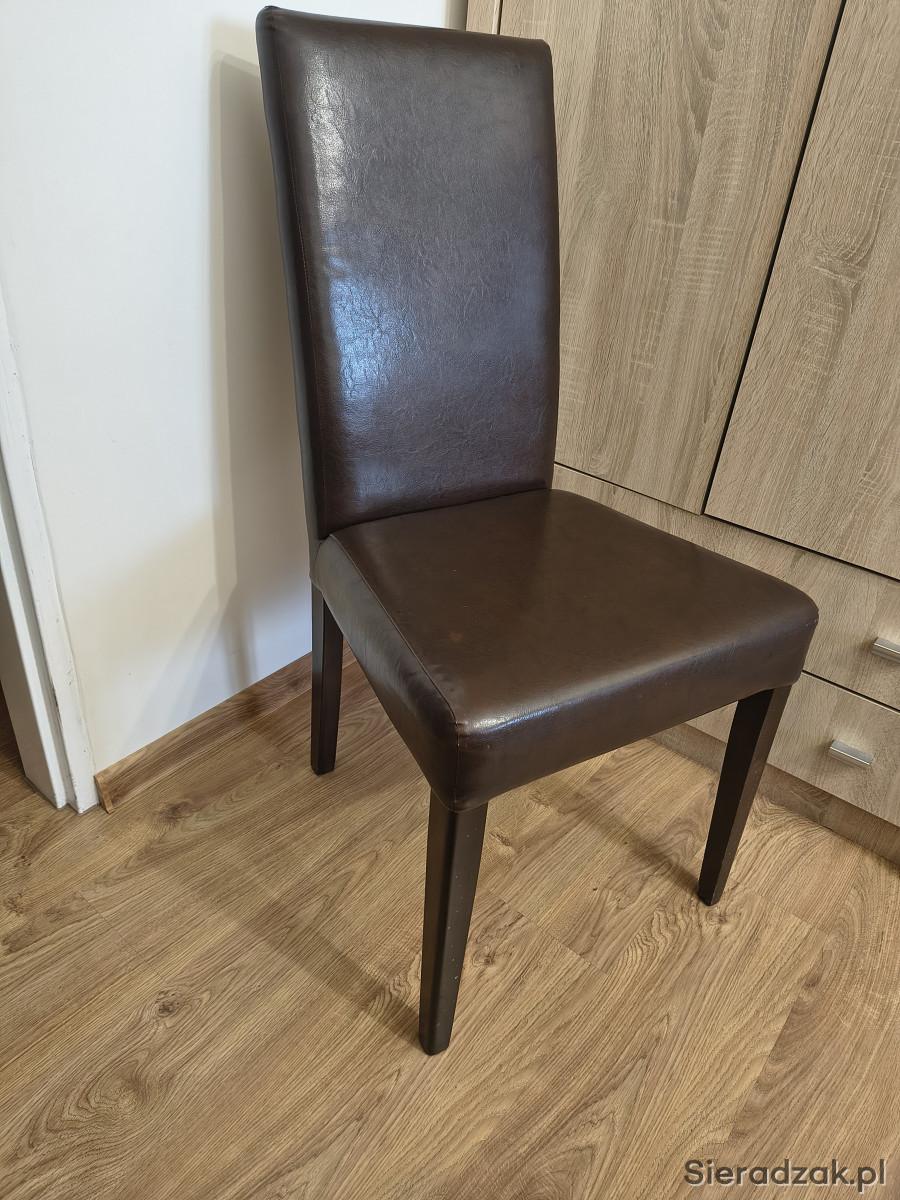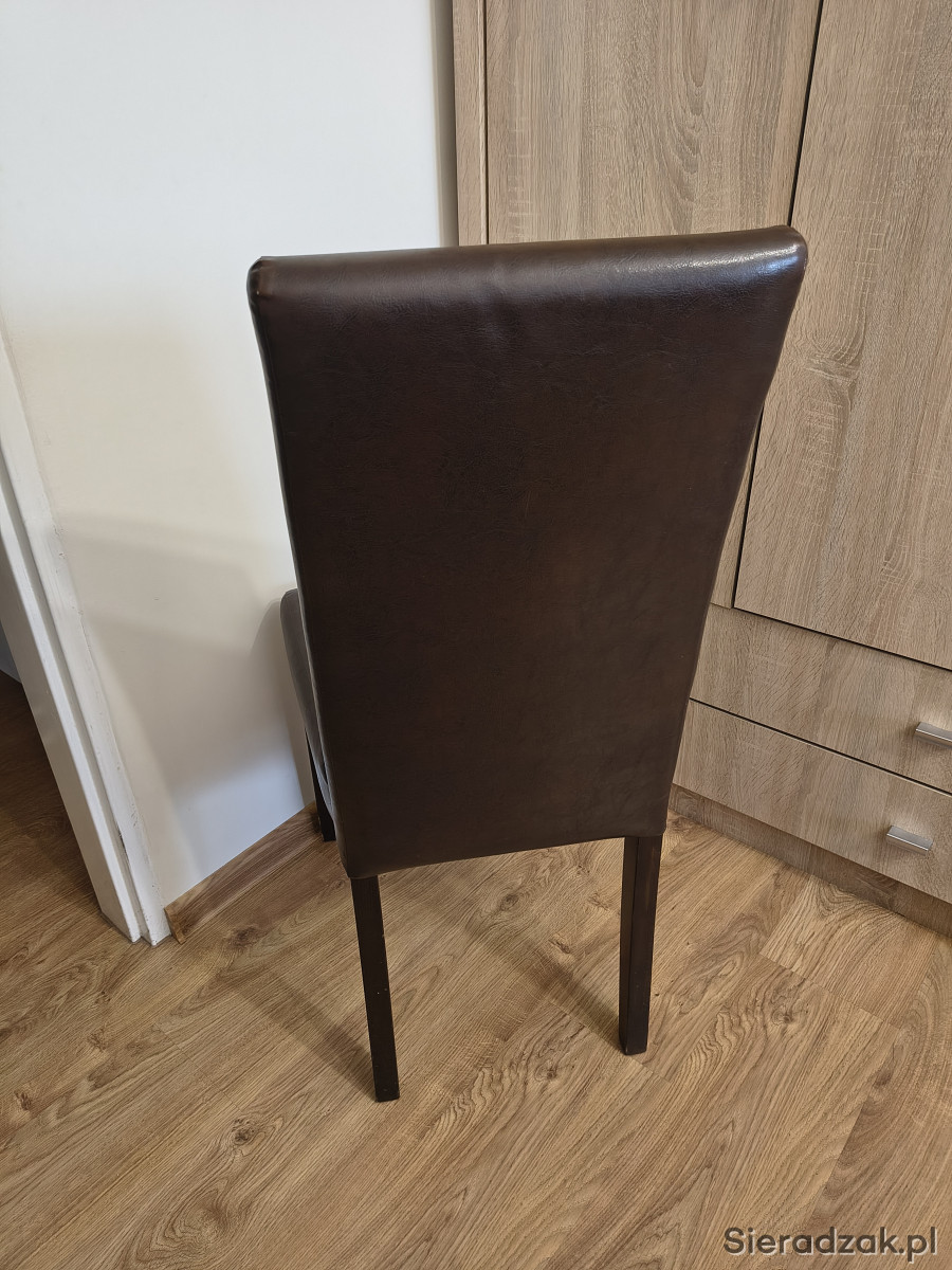 Wygodne krzesło tapicerowane ekologiczną skórą w kolorze brązowym. Black Red White, Solidna konstrukcja i elegancki design sprawią, że będzie ono idealnym uzupełnieniem Twojego wnętrza. Wysokość krzesła 98 cm, rozmiar siedziska 40x40 cm, długość nogi 38 cm, wysokość oparcia 55cm. W sprzedaży 4 sztuki, więcej informacji pod numerem telefonu 6 0 5 6 2 7 5 7 9