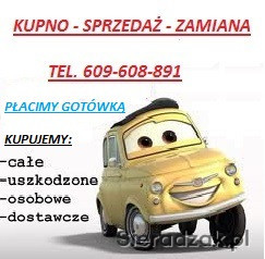 Witam. Zajmujemy sie kupnem i sprzedażą samochodów. Płacimy gotówką. Samochody mogą być uszkodzone. Kupujemy samochody od 100 zł do 30000 zł.