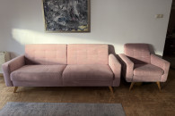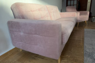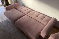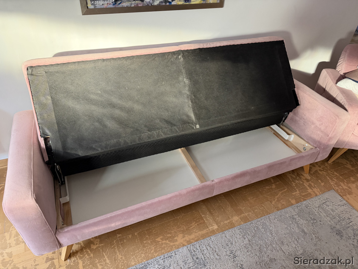 Sprzedam sofę trzyosobową z funkcją spania i pojemnikiem - Gala Sweet Sit - Nappa. Sofa jest używana, posiada jedno niewielkie przetarcie materiału wierzchniego (pokazane na zdjęciu), nie wpływa oto jednak na użytkowanie. Mechanizm rozkładania jest sprawny, nóżki bez uszkodzeń, pojemnik na pościel również. Tylko odbiór osobisty. Zapraszam do kontaktu.