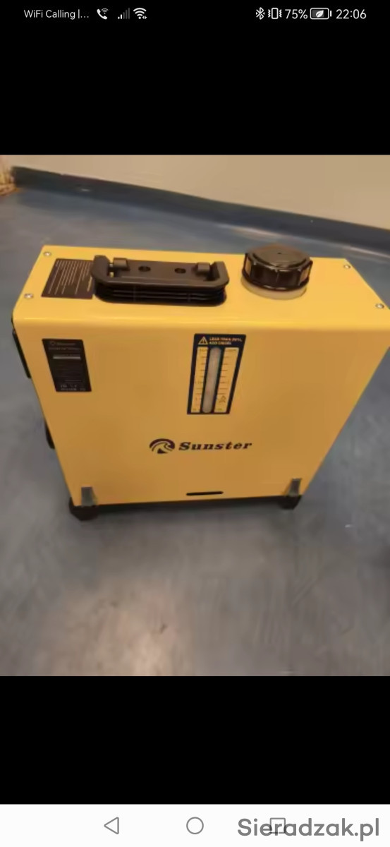 Nowy ogrzewacz powietrza Webasto Sunster 8kW 12V, przeznaczony do przyczep kempingowych, garaży lub namiotów. Urządzenie zapewnia efektywne ogrzewanie w chłodne dni.
