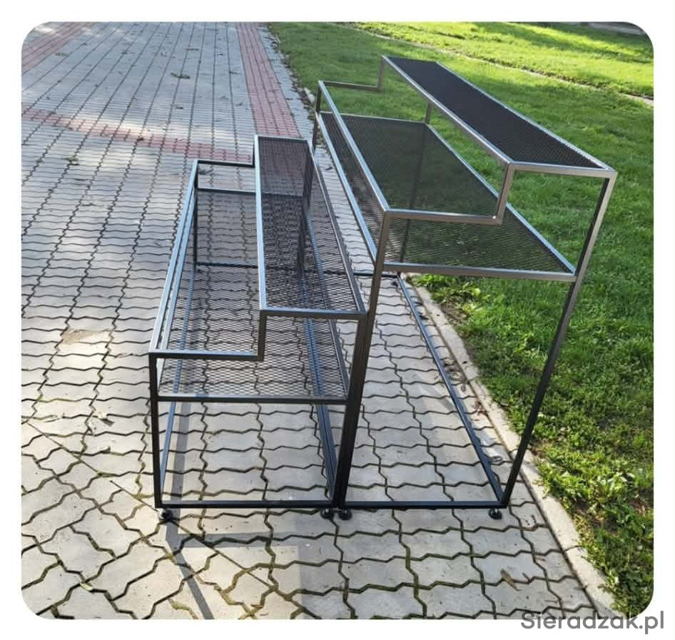 Regał wykonany na zamówienie, użytkowany w kwiaciarni przez dwa lata, jest w stanie idealnym.
