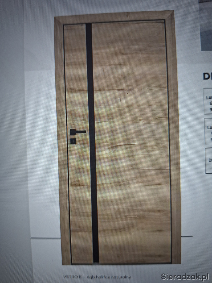 Drzwi DRE model VETRO E, kolor Dąb Halifax, usłojenie pionowe, ościeżnice regulowana bezprzylgowa zamki magnetyczne