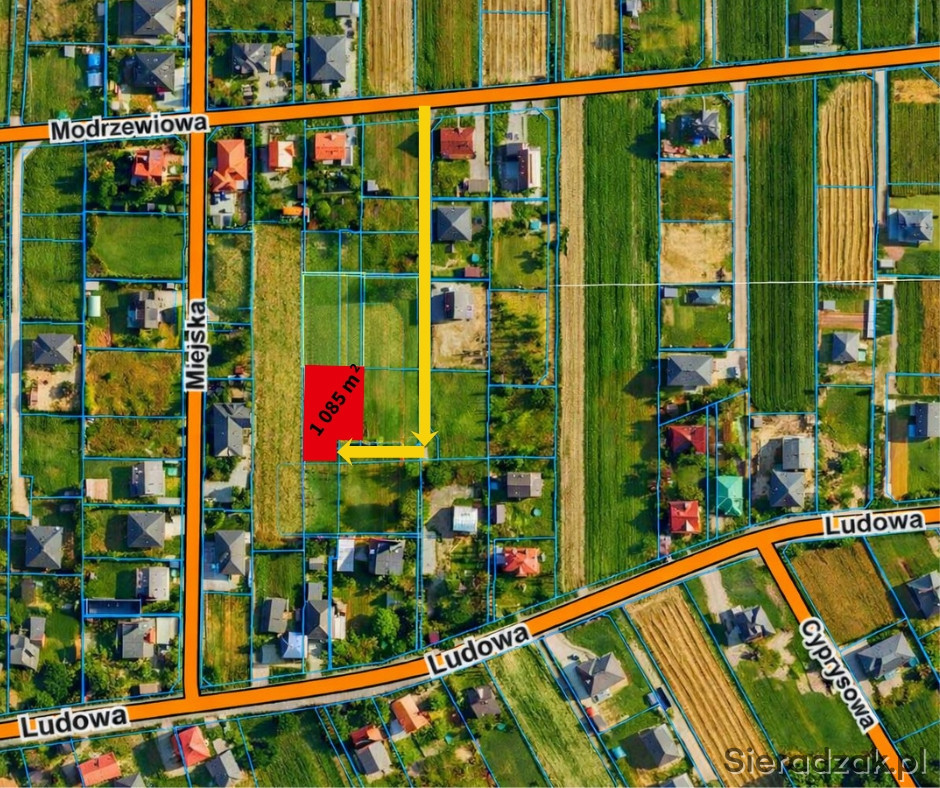 Sieradz | 1 085 m² | Ludowa / Modrzewiowa | 2 linia zabudowy | WZ na dom jednorodzinny