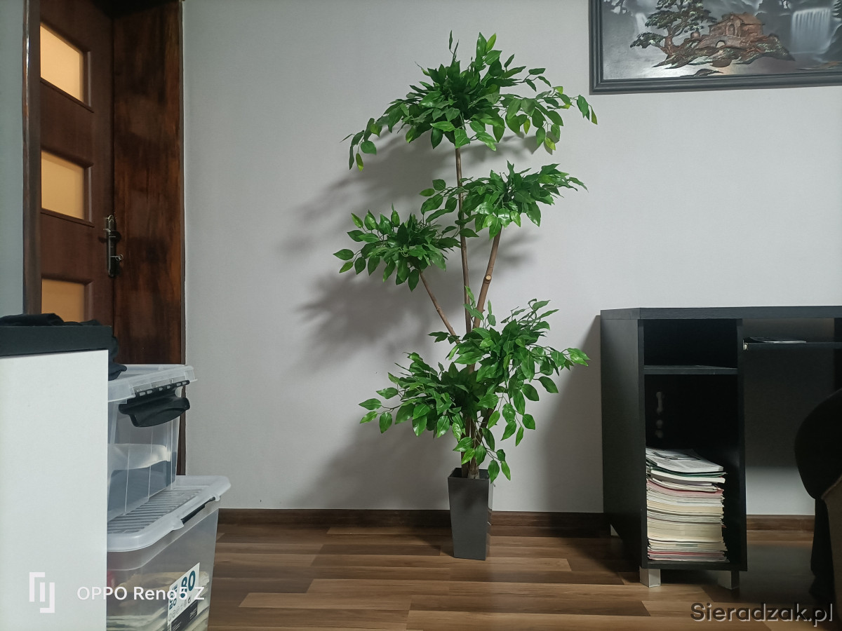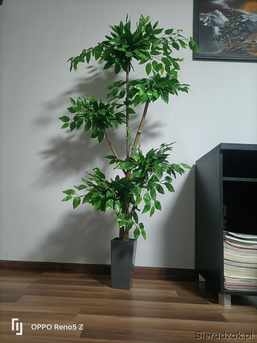 do sprzedania duży ale sztuczny Fikus beniaminek beniamin drzewko Bonsai .liście błyszczące zielone gęste do można przyciąć w idealne kule .5 kulek chmurek .wys całkowita 170cm.doniczka zalana betonem 20 cm. szer drzewka 60 c