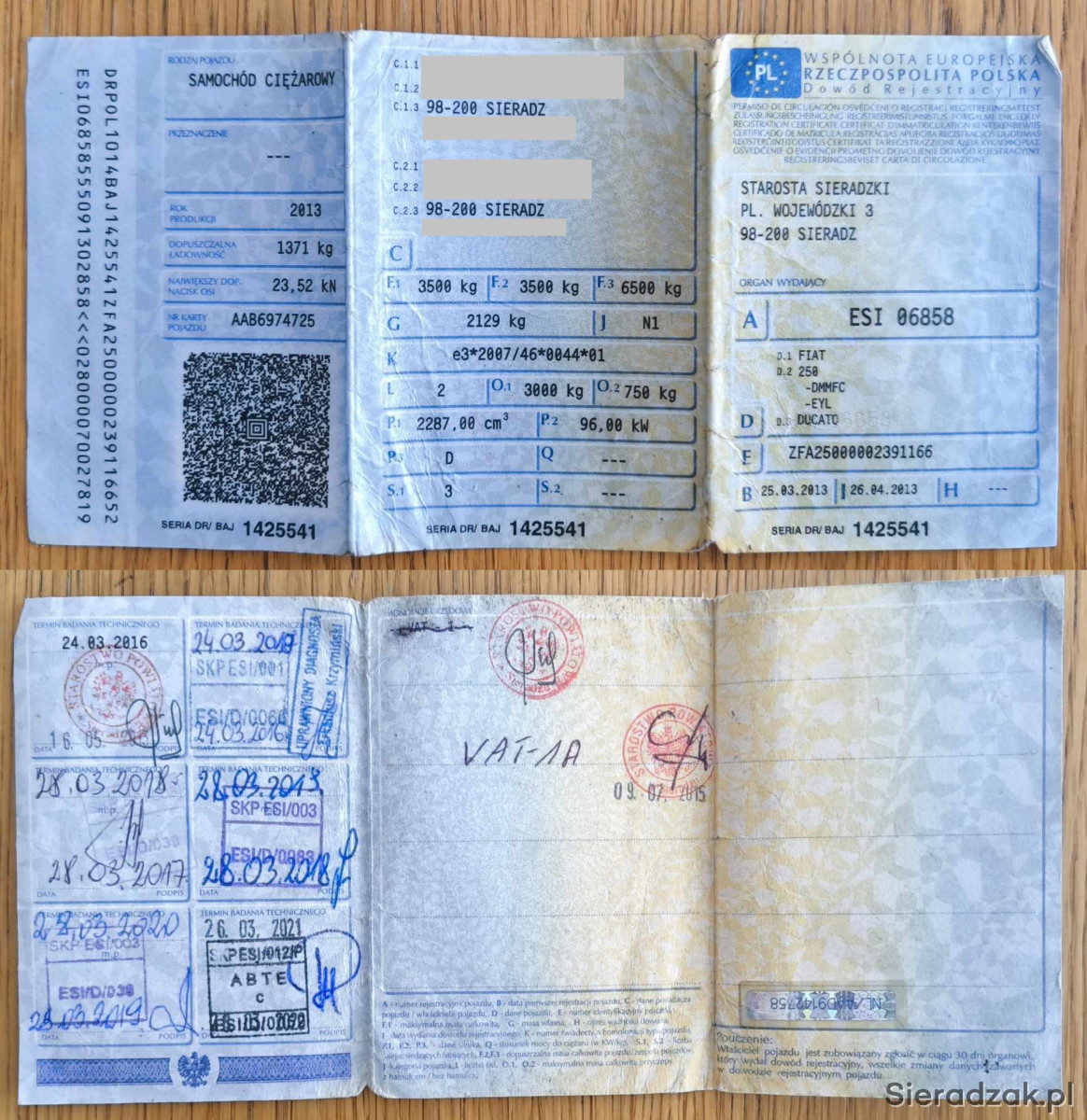 opony wielosezonowe w akceptowalnym stanie liczba miejsc 3, ładowność 1371kg (kat B = do 3,5tony)