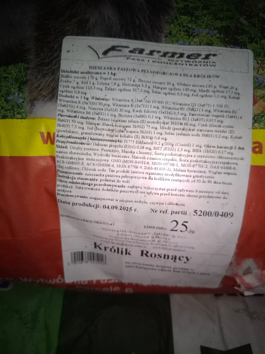 Skład Opału Puchatek zaprasza do zakupu paszy dla królików rosnących, marki Farmer, dostępnej bezpośrednio na naszym, składzie.