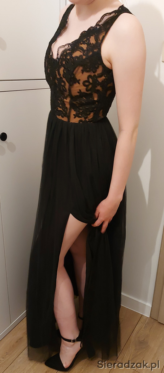 Sprzedam sukienkę wieczorową, odciętą w talii, która