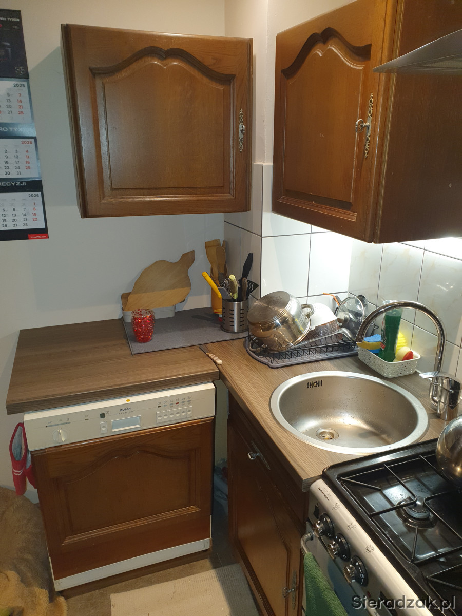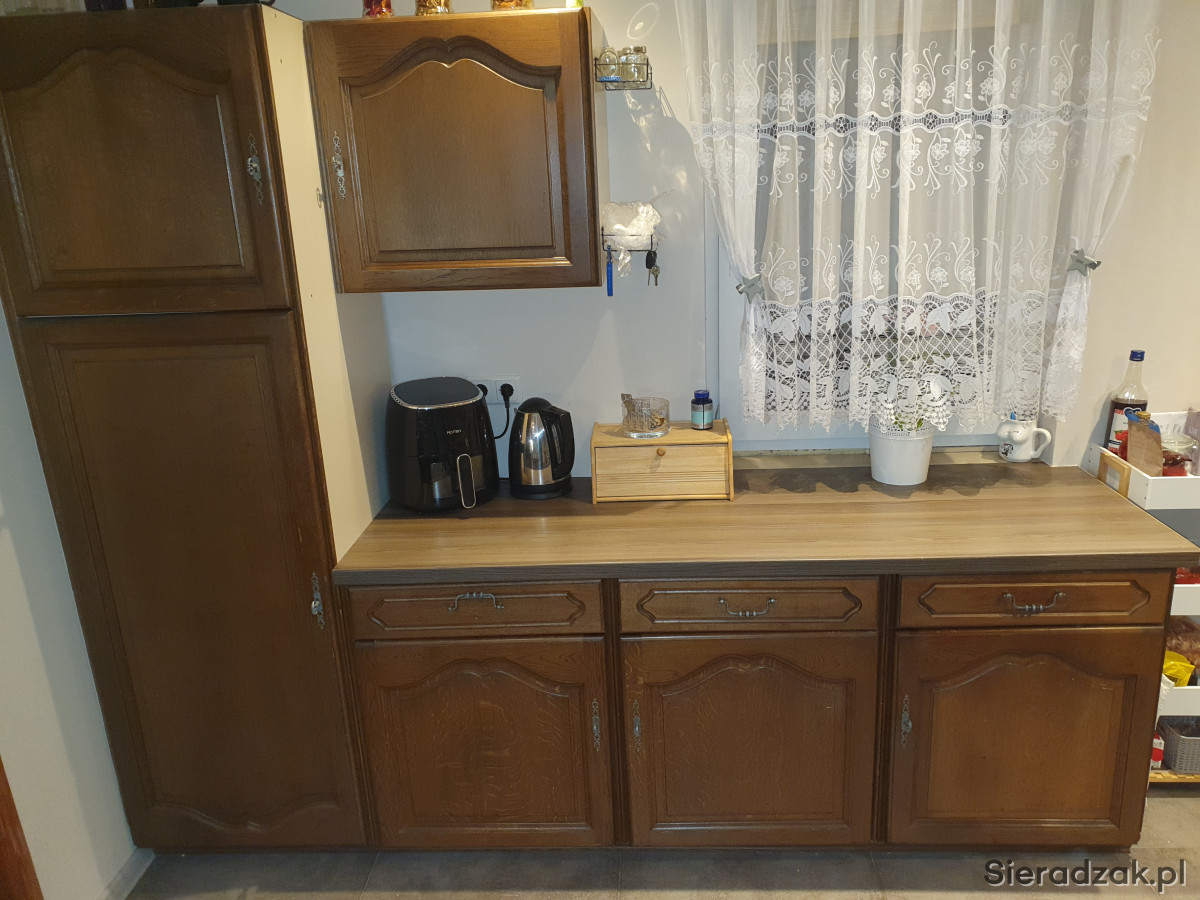 Witam. Sprzedam solidne drewniane meble kuchenne w dobrym stanie. Wymiary szafek wiszących 60/56/30 stojące 60/190/60i 60/70/60 plus zmywarka Bosch,okap, kuchenny , zlewozmywak,kran Odbiór osobisty.