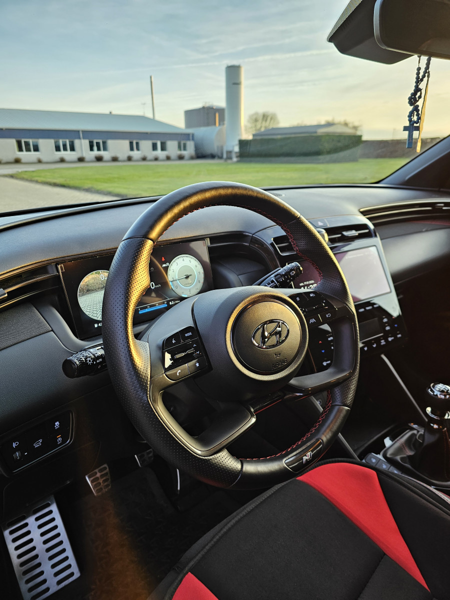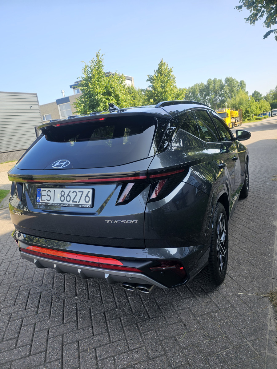 Hyundai Tucson N-Line 2022 1.6 T-GDi 150 KM (benzyna) z kamerami 360° oferuje sportowy design (N Line) i bogate wyposażenie, obejmujące m.in.