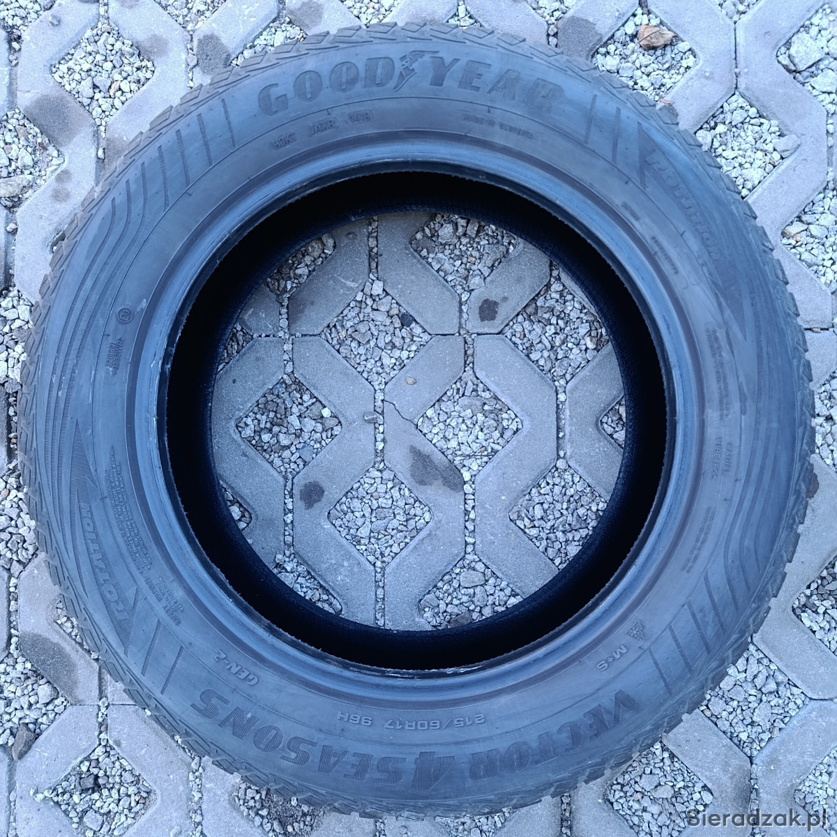 4x opony całoroczne wielosezonowe Goodyear 215/60 R17 96H, DOT 1419, bieżnik 2x6mm 2x5mm. Opony w dobrym stanie jak na zdjęciach, sprawdzone ciśnieniowo.