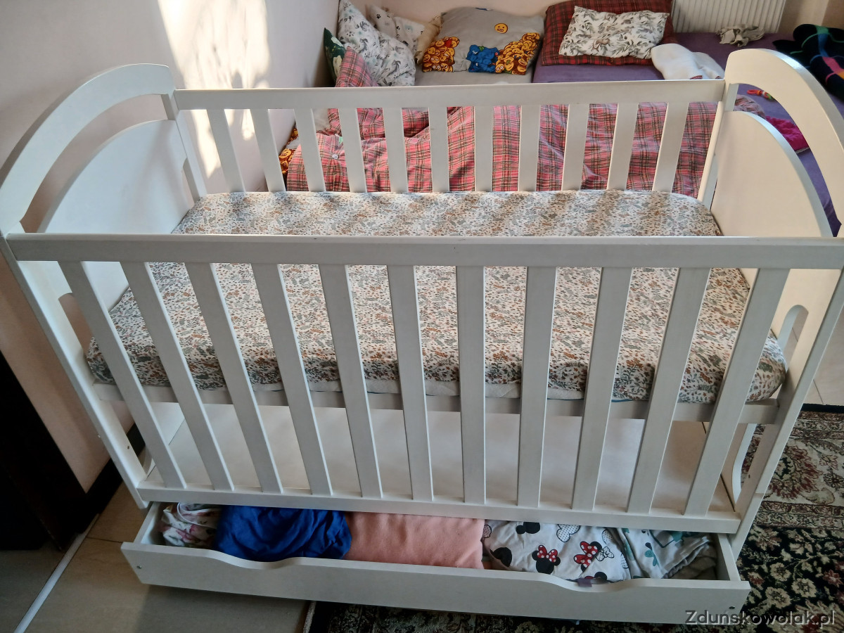 Sprzedam łóżeczko z szufladą regulowane w dobrym stanie z materacem Dołoże przewijak Odbiór osobisty