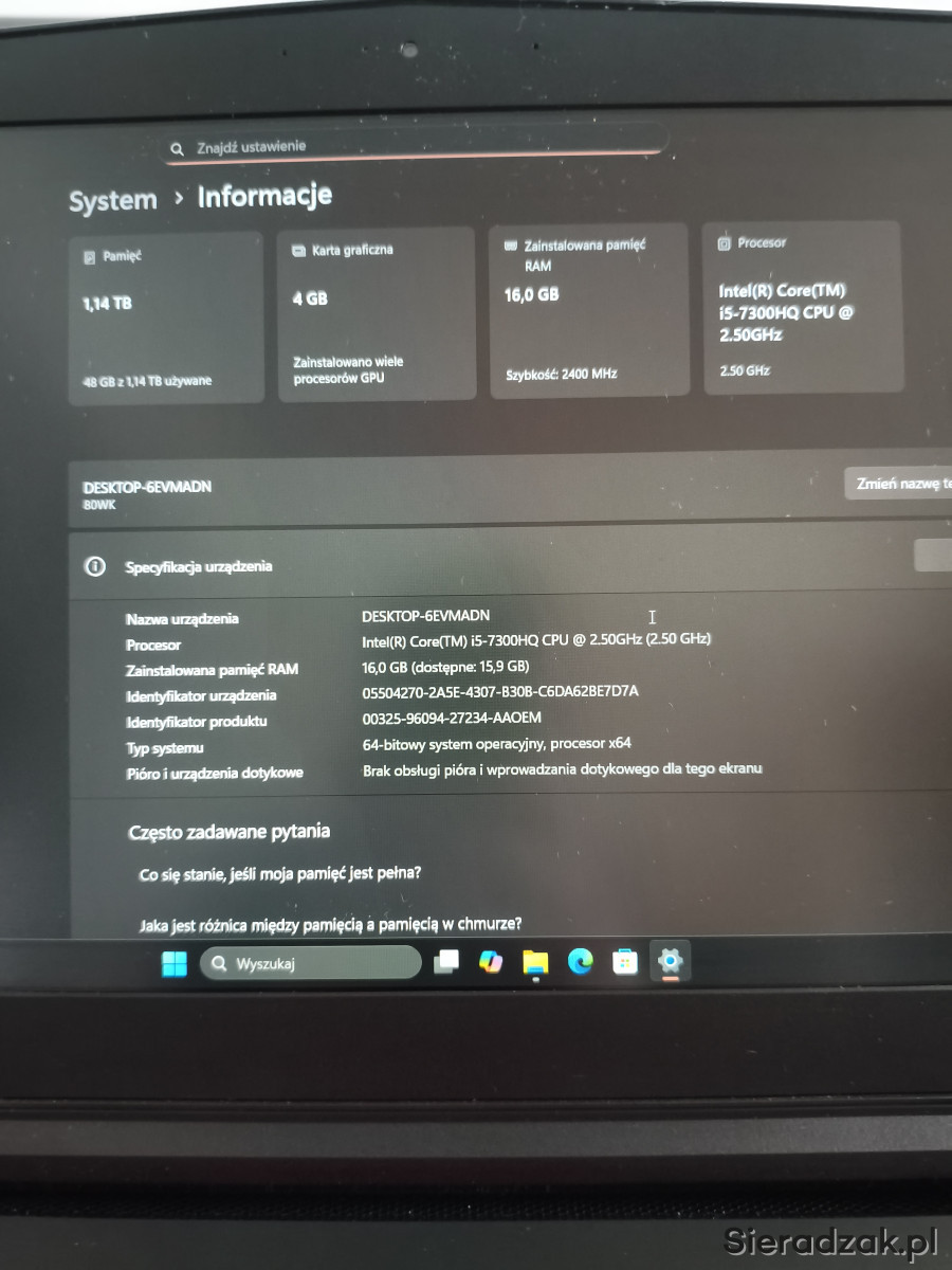 Nie tego szukasz? Przejrzyj inne oferty z tej kategorii (Telefony i Komputery › Laptopy i podzespoły). Możesz też zawsze przejść na stronę główną lub skorzystać z wyszukiwarki. ⊗
