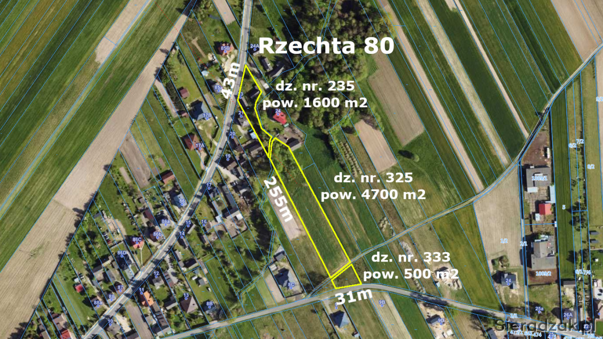 Biuro Piotrowski Nieruchomości przedstawia na sprzedaż siedlisko wraz z zabudowaniami położone na trzech działkach o łącznej powierzchni 6 800 m.kw. w miejscowości Rzechta gm. Sieradz.