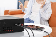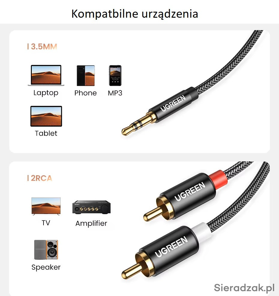 Kompatybilny ze wzmacniaczem, głośnikiem, telewizorem, radiem samochodowym, DVD, odbiornikiem AV;