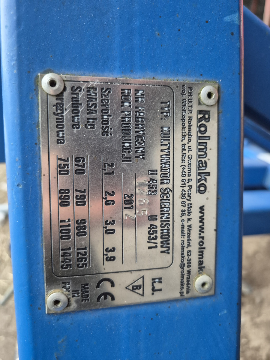 Sprzedam Agregat ścierniskowy/gruber Rolmako U453/1 Szerokość 2.1m, stan bardzo dobry, nie spawany. Rok produkcji 2012, 5 łap zabezpieczonych śrubami, 6 talerzy wyrównujących 420mm. Wał rurowy 500mm - 12 rur, belka szybkiego zaczepiania, regulacja głębokości pracy na bolcach. Wszystko w oryginale, maszyna garażowana. Cena 7 100zł do negocjacji. Nr tel: 7*2*1 - 7*3*6 - 4*5*8