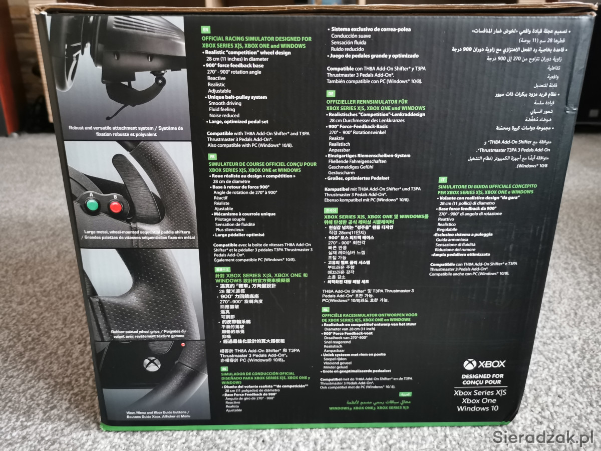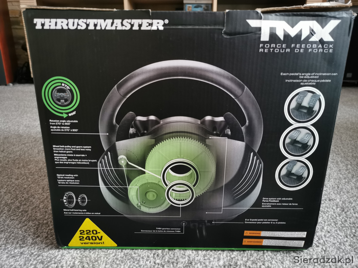 W komplecie wszystko to co na zdjęciach tj. kierownica, pedały, drążek zmiany biegów (shifter) oraz adapter umożliwiający podpięcie shiftera do PC.Kierownica jest kompatybilna zarówno z konsolą Xbox oraz PC. Stan sprzętu: 100% sprawna, normalne minimalne ślady użytkowania, sprzęt czysty i zadbany.