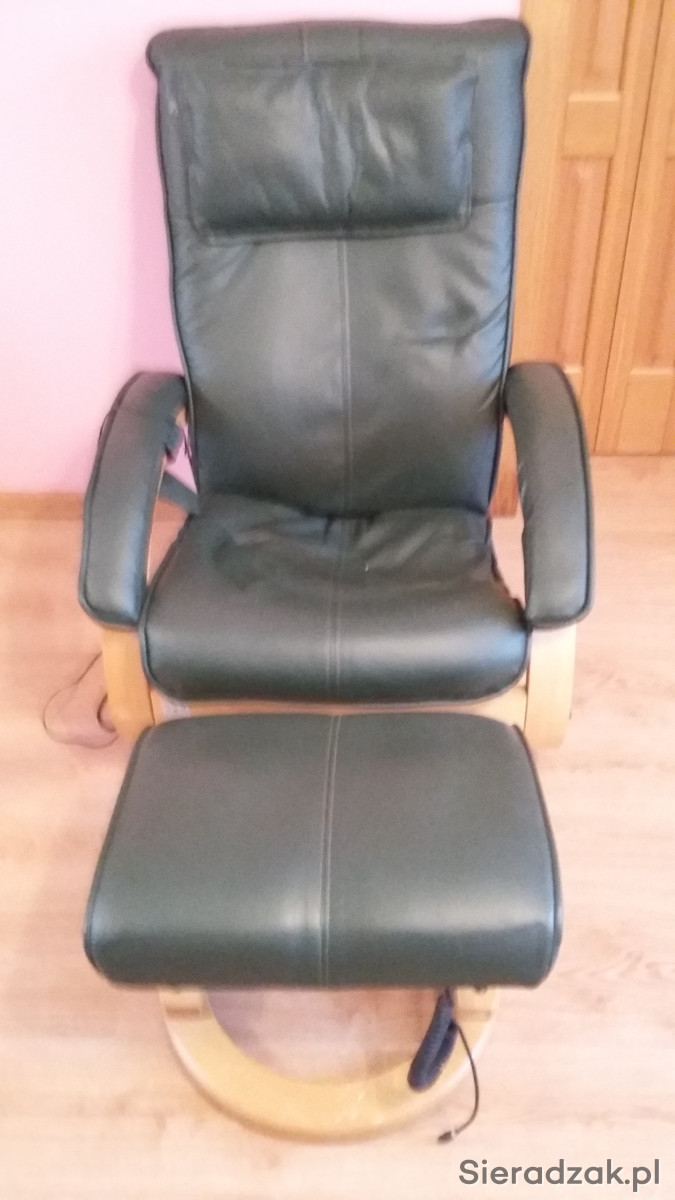Fotel masujący z podnóżkiem również masujący nogi, ciemno-zielona eco skóra , w dobrym stanie , pilot wybierający rodzaj masażu. Nowy model kosztuje 700,00 ja sprzedaję z uwagi na wyjazd.