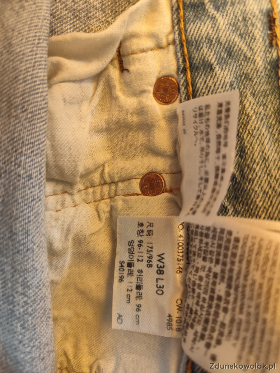 Spodnie Levis 501 w kolorze jasnoniebieskim, w rozmiarze W38 L30. Używane