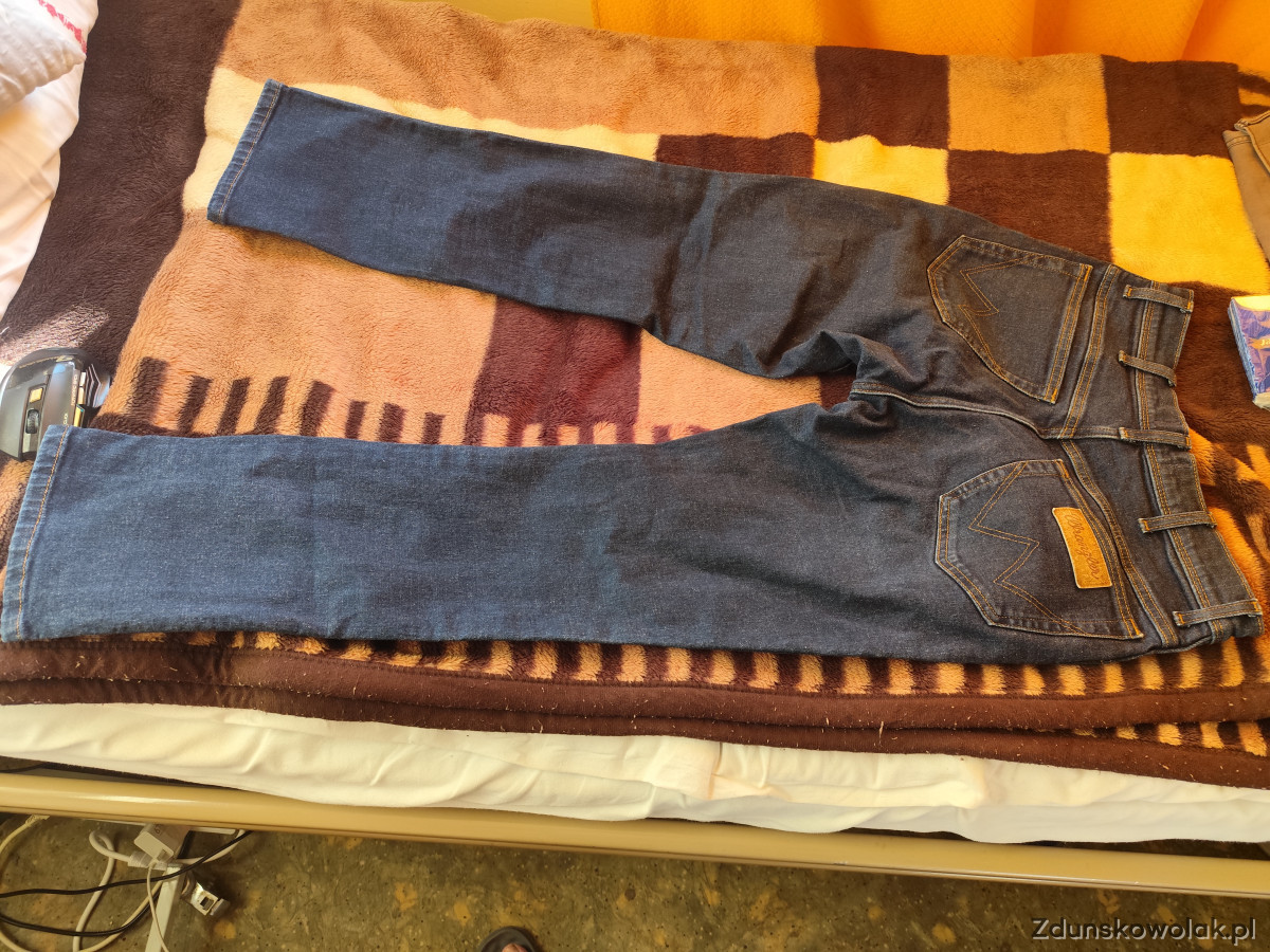 Spodnie Wrangler w kolorze niebieskim, w rozmiarze W30 L30, w stanie jak nowe. Idealne dla miłośników klasyki i wygody. Spodnie są jak nowe , żadnych przetarć itp.