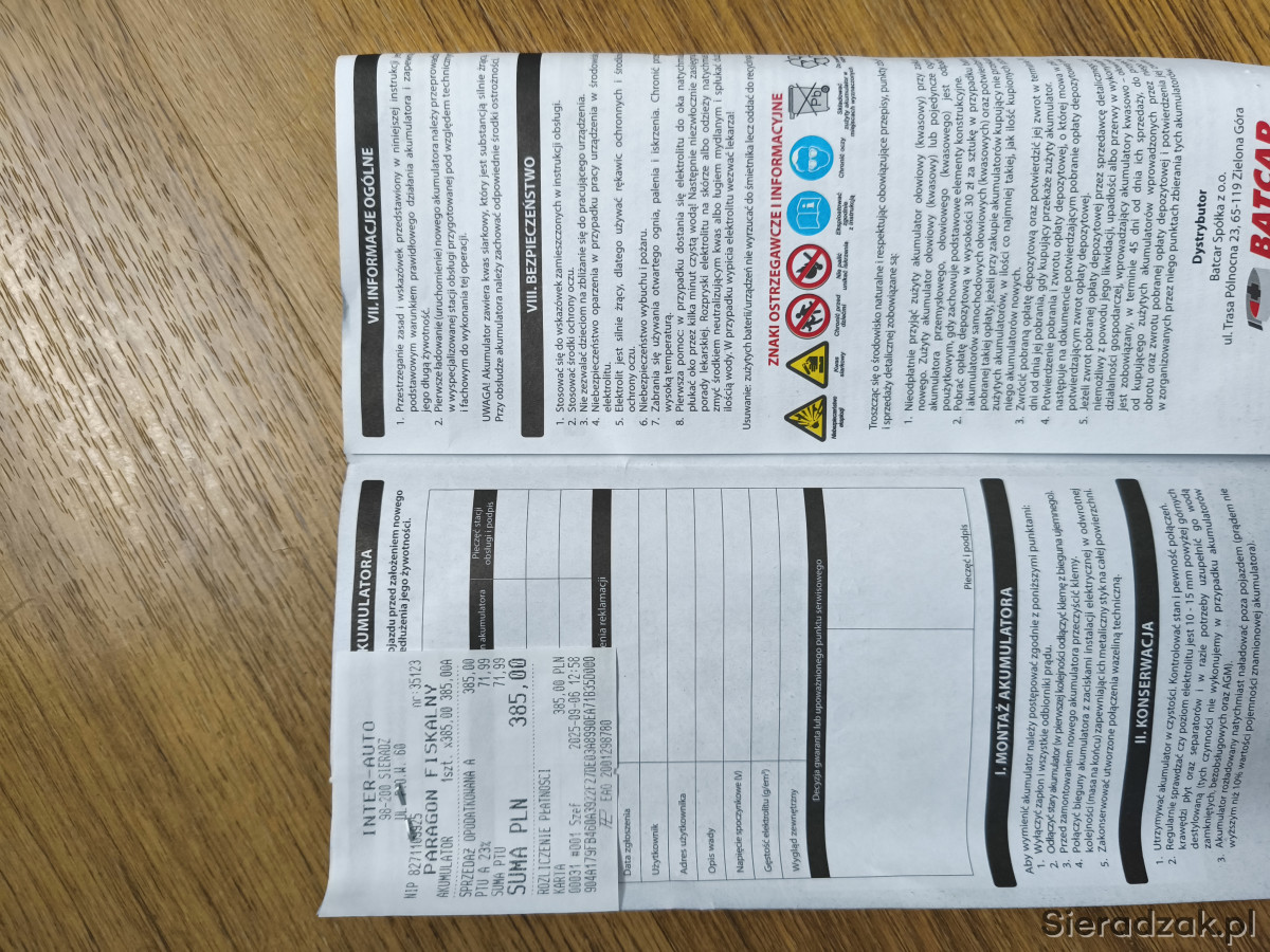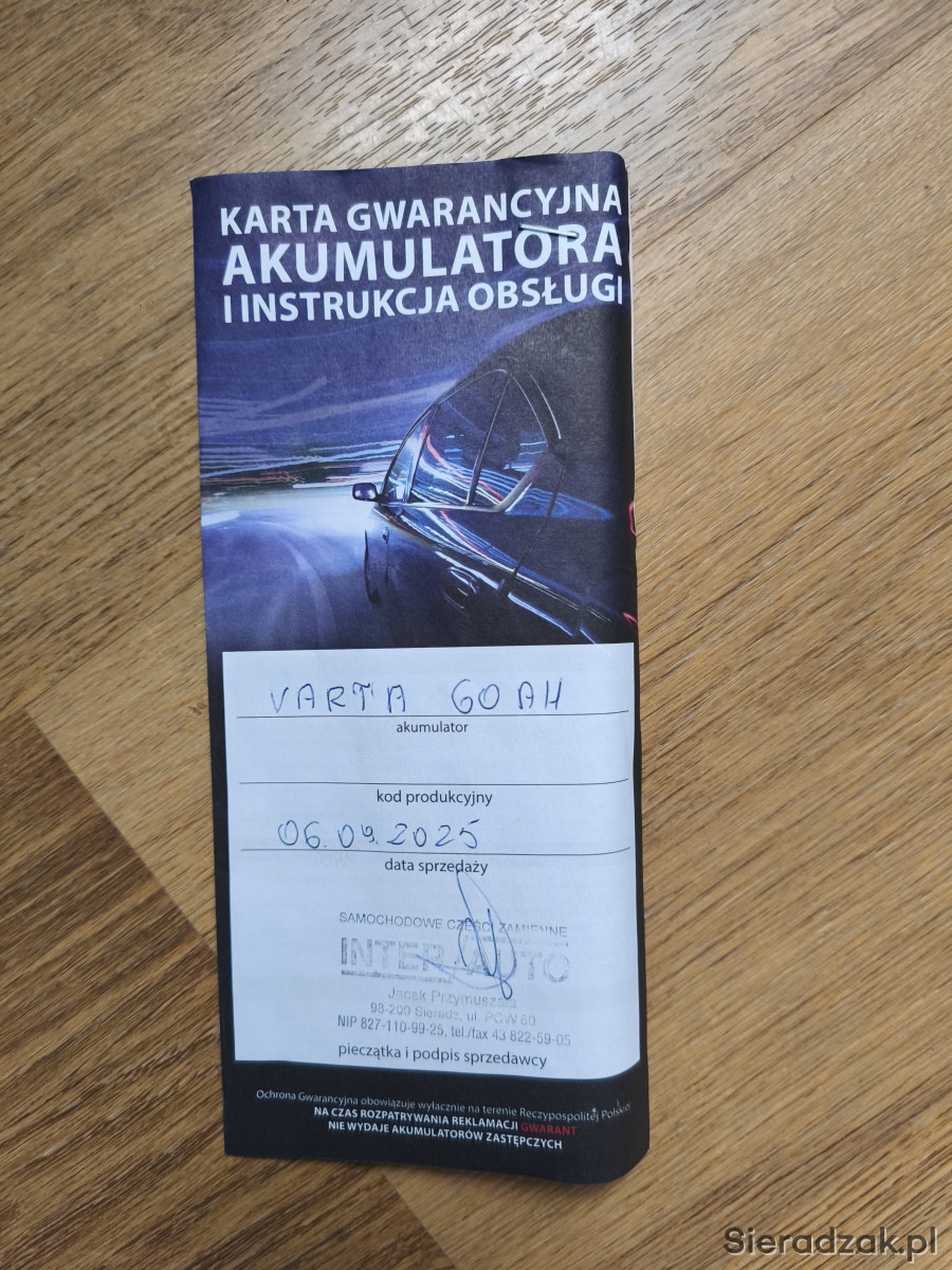 Sprzedam akumulator używany Varta 12v60Ah540A jeszcze na gwarancji. Więcej informacji pod nr. Tel 727937389