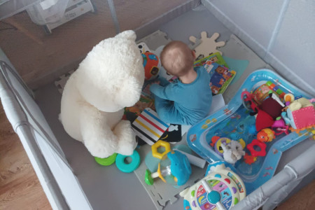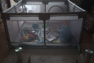 Na sprzedaż kojec dla dziecka, mało używany, ochraniacze piankowe.