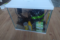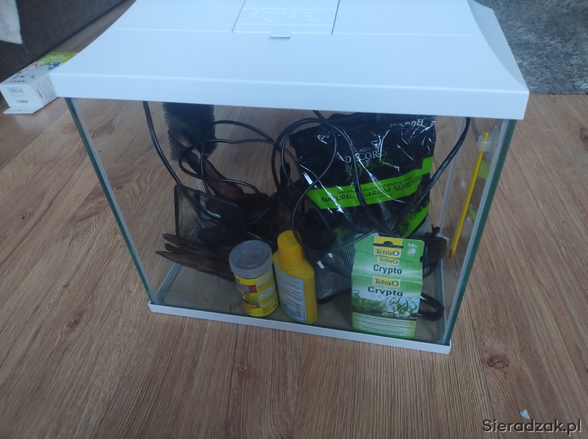 Sprzedam w pełni wyposażony zestaw akwariowy o pojemności 19 litrów, idealny na start przygody z akwarystyką, krewetkarium lub małe akwarium roślinne.