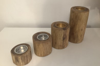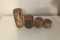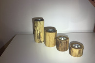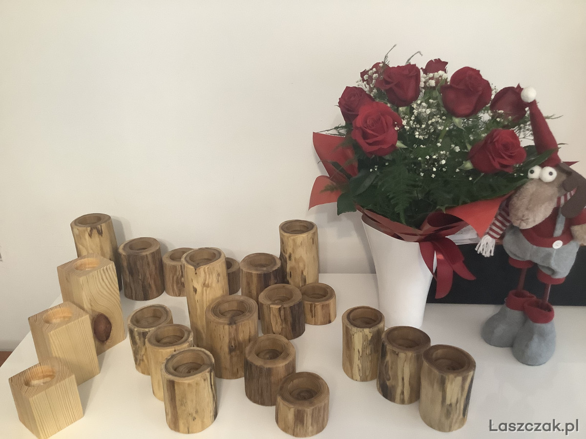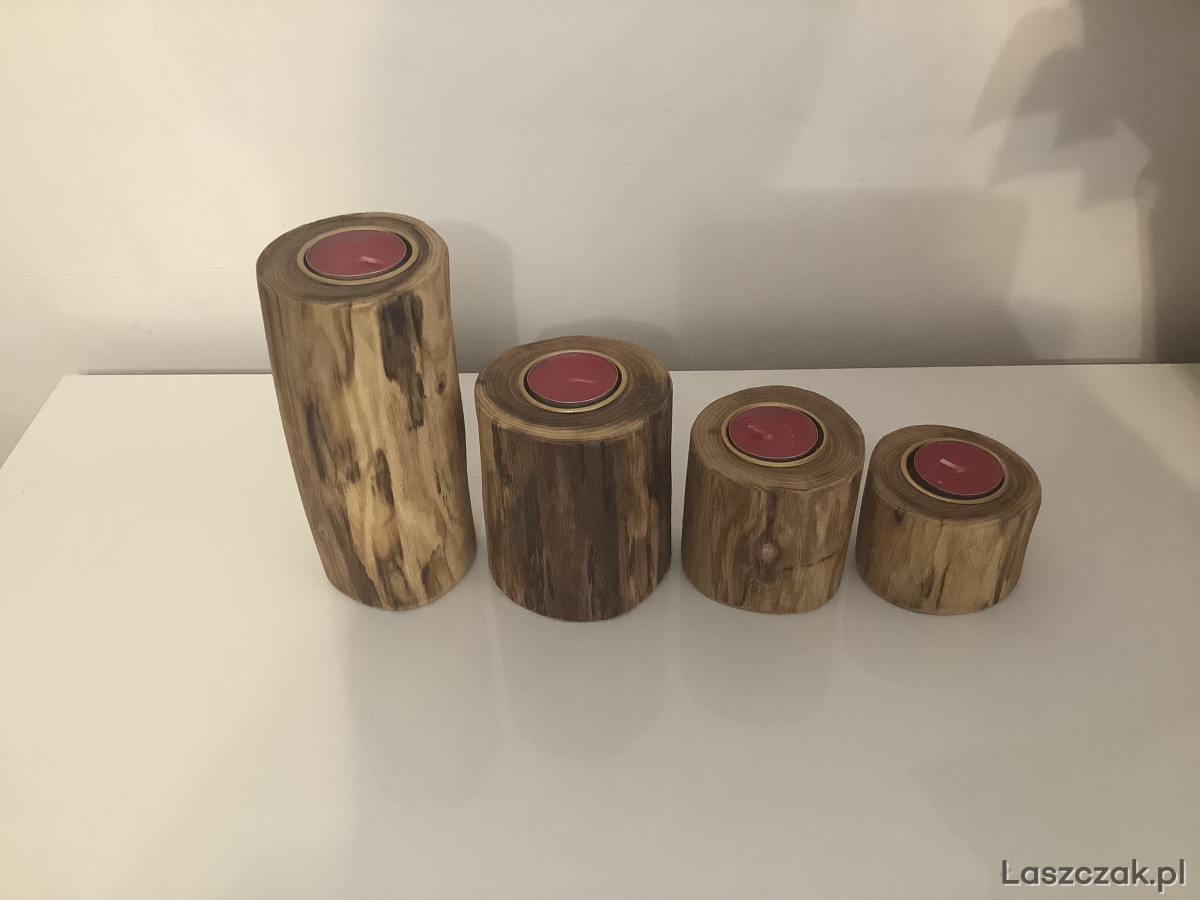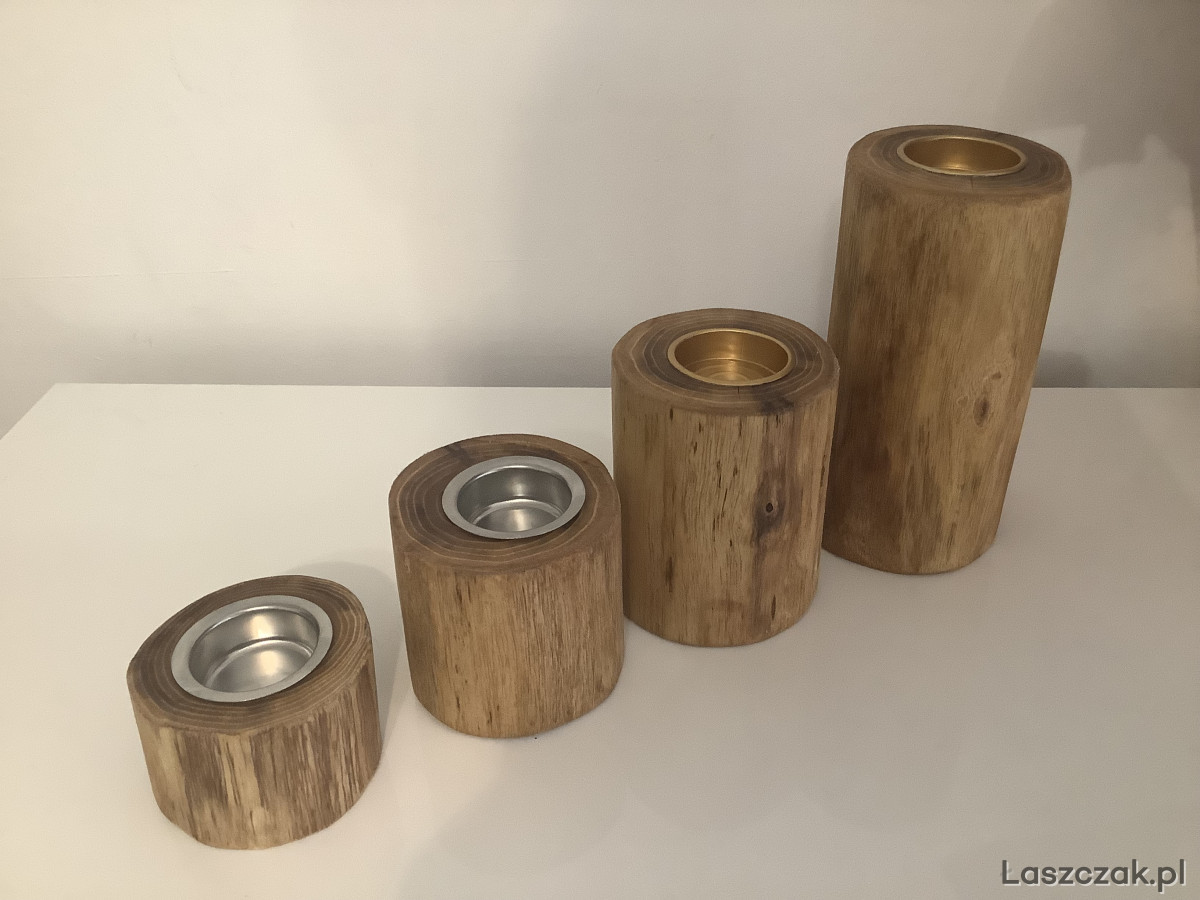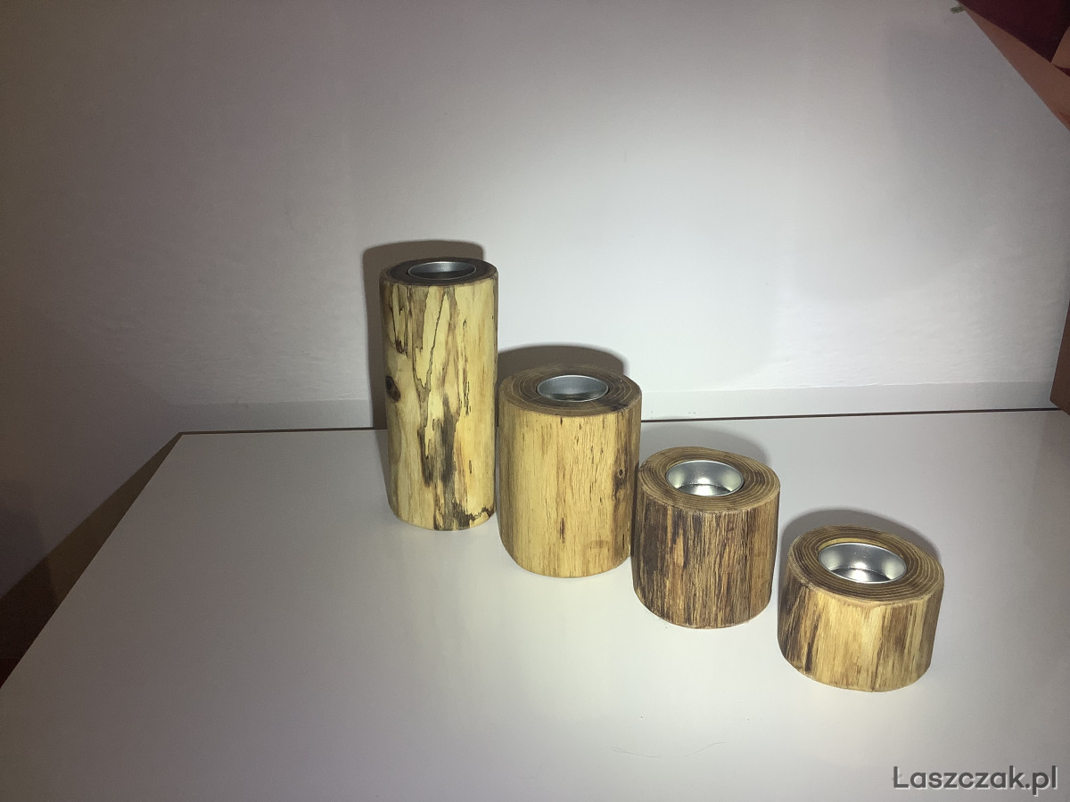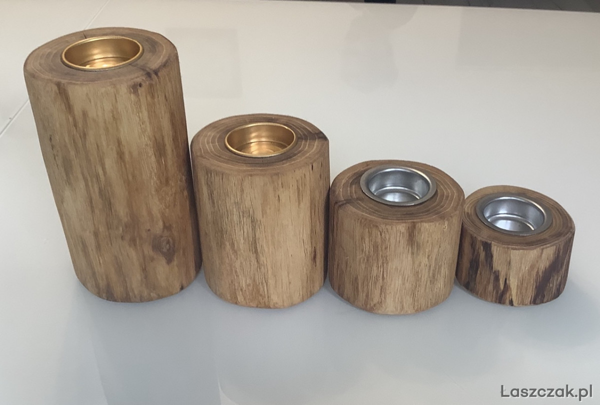 Ręcznie wykonane świeczniki z akacji lub sosny. Zabezpieczone 3-krotną warstwa oleju tungowego. Do wyboru wkładki srebrne lub złote.